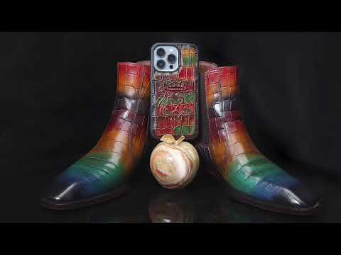 Ankle boot in leather are a dream come true for many a fashion-aware executives. These deep cut croco print genuine leather ankle-length shoes are fitted to emphasize the size and shape of your feet to perfection. The classic elastic outside and inside made it very convenient to wear. These Multi-Color boots provide the distinct and sassy look. They are easy to team with formal trousers as they blend well with the classic fabrics as well as the modern blended synthetic fabric pants, slacks and trousers. The anti-skid leather sole adds the extra elegance to it. You can customize this chic boots in any of your favorite color with our bespoke services.