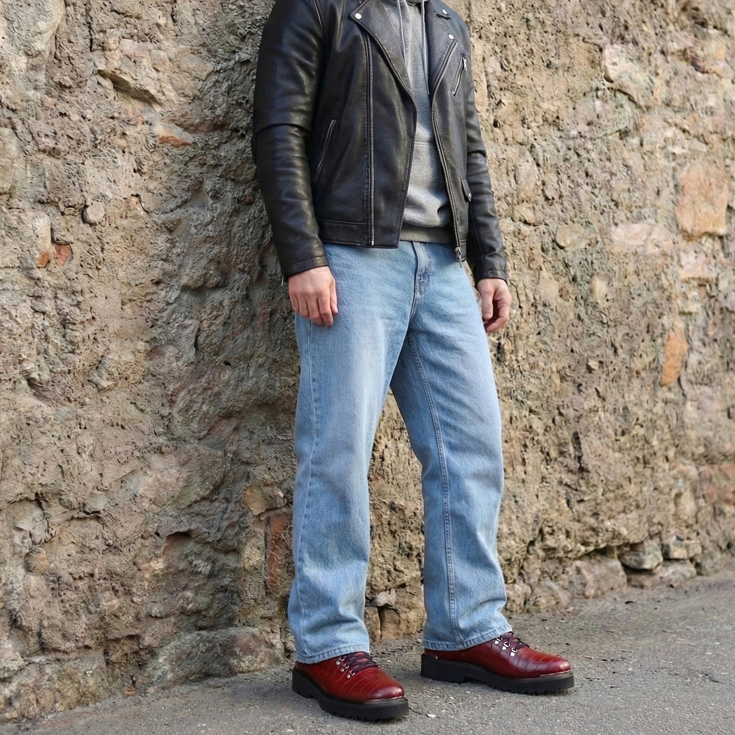 Hand-Painted Wine Deep Cut Croco Leather Brune & Bareskin Boots are crafted to provide the utmost comfort and next-level style. It is a perfect pair to carry on long travels. Deep Cut Croco shoe looks lavishing with metal shoe eyelets and Brune & Bareskin's signature metal lion logo. The metal plates on the toe and ankle provide more rigidity and oomph to it. These ankle-length shoes are fitted that emphasize the size and shape of your feet to perfection. They are easy to team with formal trousers as they blend well with the classic fabrics as well as the modern fabric pants, slacks, cargos, and trousers. You can make a travel combo with a matching Leather bag and jacket. The company " Brune & Bareskin" complements the fashion statement in a unique way to help customers cherry-pick from the collection & feel better & look better.