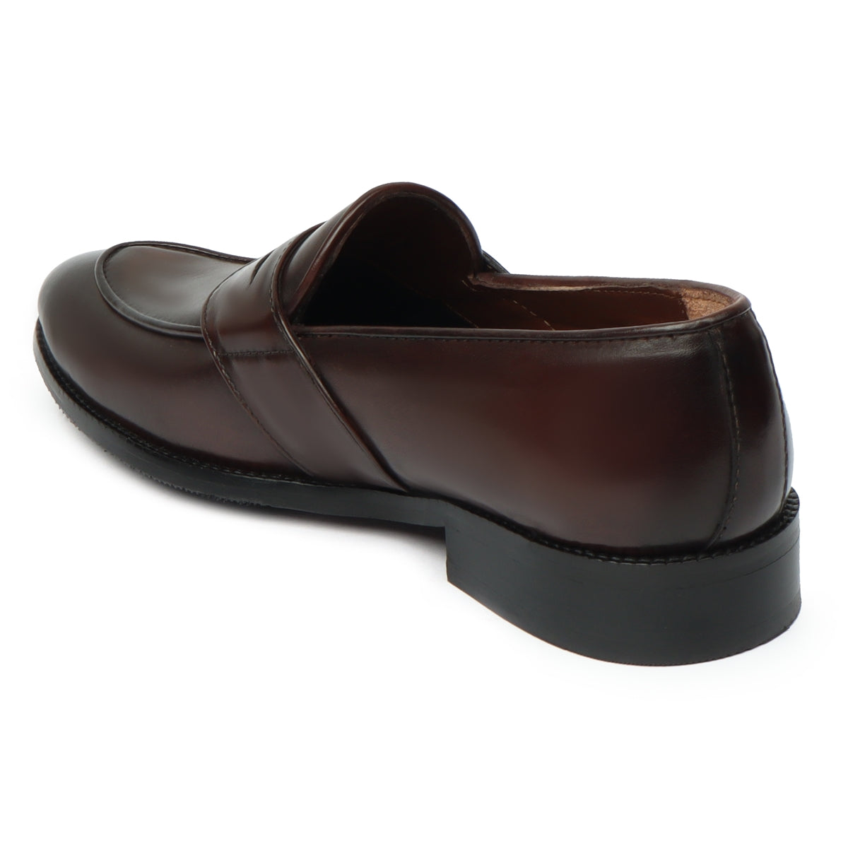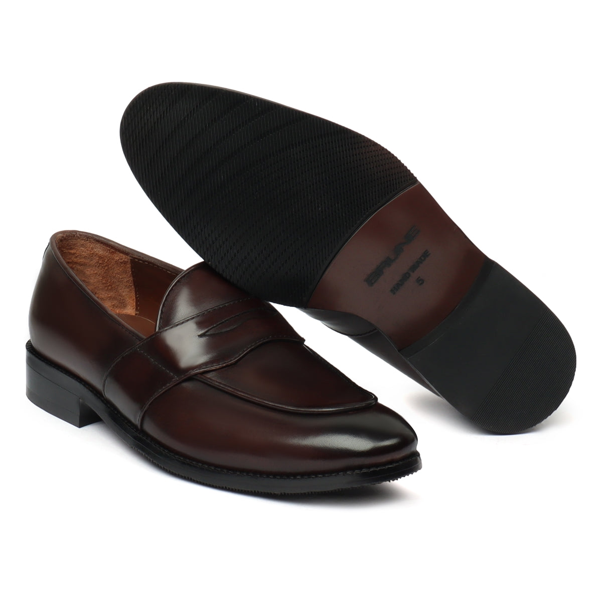 This pair of snug-fit, loafers shoes in astonishing Dark Brown tint leather is ideal for everyday wear to the office or for meetings with clients. The round apron toe adds an element of perfect style while the rounded and narrow heel ensures a snug fit as well as foot balance. The Dark Brown finished hand painting provides elegance to it and your looks. When you choose to wear branded, shoes by BRUNE & BARESKIN, you are sure to get more than a few glances coming your way. Flaunt your fashion style in this pair of hand-painted leather shoes for your first one-to-one with your boss, and come away leaving an unforgettable impression.