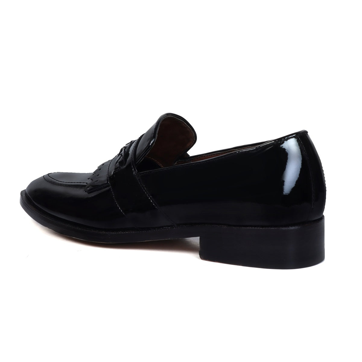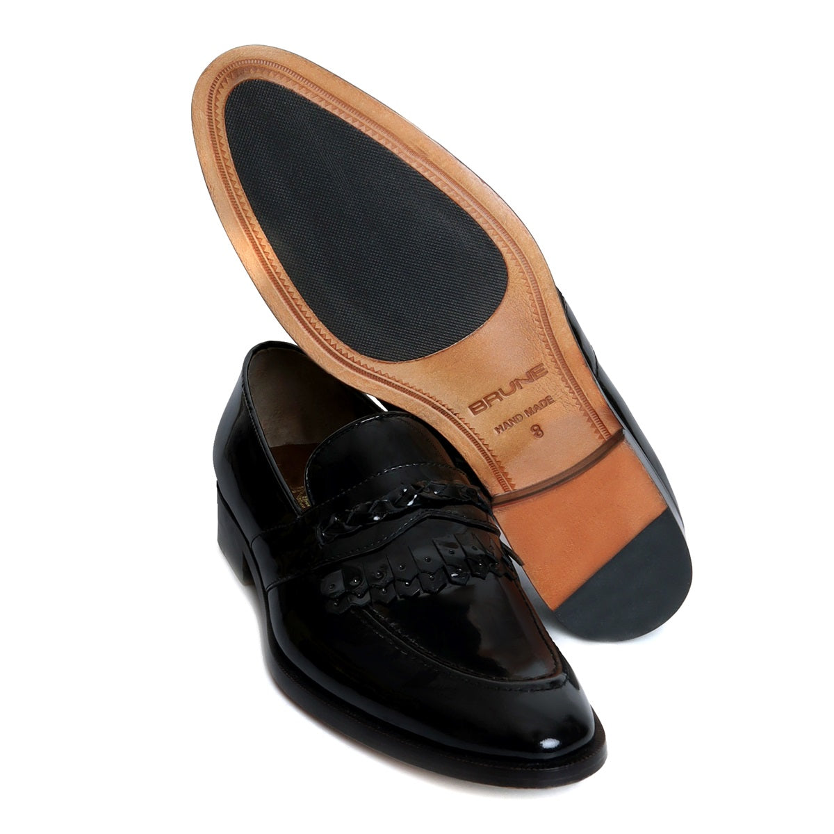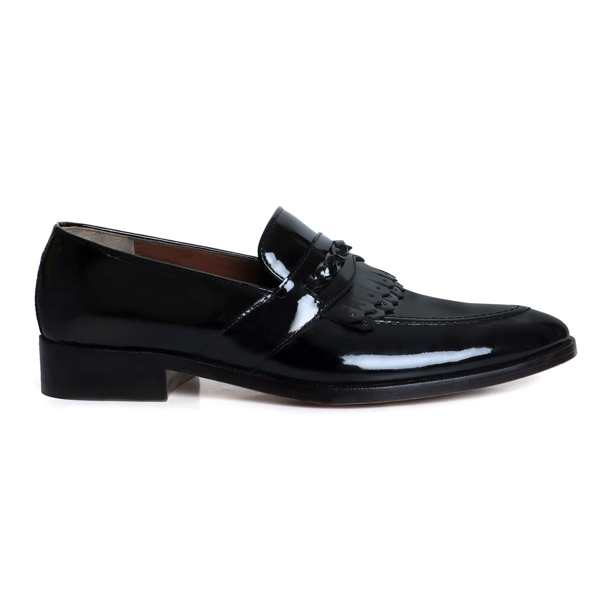 Black Patent Leather Slip-On Loafers with Dual Fringes Weaved Strip by Brune & Bareskin