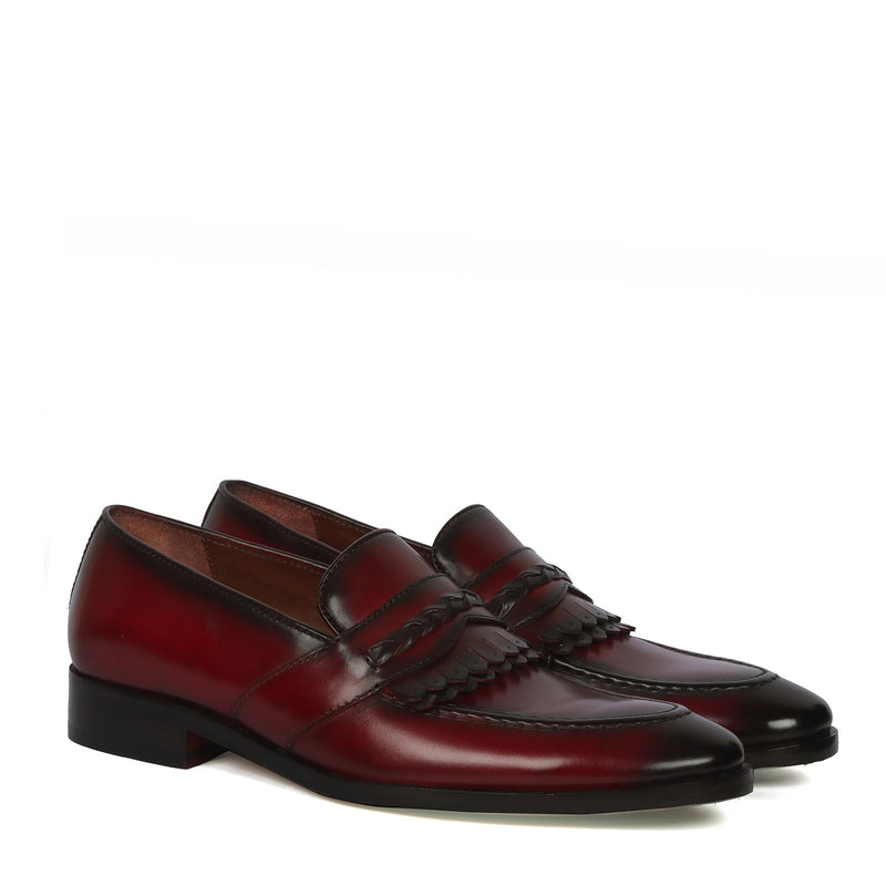 A modern twist on a moccasin shoe that combines Fringes and woven strap to enhance the style statement. It is a perfect match to wear with formal-to-casual attires at any party or office. The punched double fringes with weaved strap enhance the chic style further. The Slip-on loafers are always considered as a fast pace lifestyle shoe. The textured outer sole provides a better grip in different conditions. These Blue leather shoes by "BRUNE & BARESKIN" has a very sleek gentleman look. The slip-on closure provides easy to wear at any time. The multi-fringes design increases the style statement and makes you the center of attraction. The rubberized sole provides durability and flexibility.