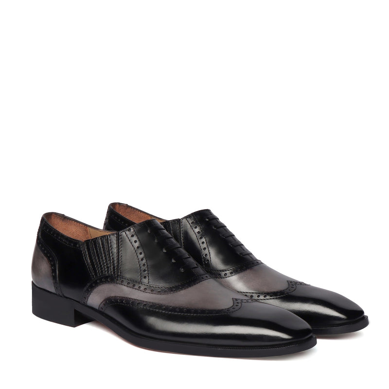 Finding shoes that spell your style, besides being comfortable to wear is definitely a challenge. However, if the shoes are made by BRUNE & BARESKIN, you can be sure to find the perfect blend of comfort and style. This is a perfect pair for the occasion to express your way. It's looking more tempting with punching style across the shoe. The lazy man shoe style is crafted specially by BRUNE & BARESKIN for easy and fast wear-ability. The side elastic covered with leather pieces provides a seamless look to it. The classic oxford styling looks more elegant with fixed leather laces. Rubber injected leather sole strengthens the grip and style statement further.