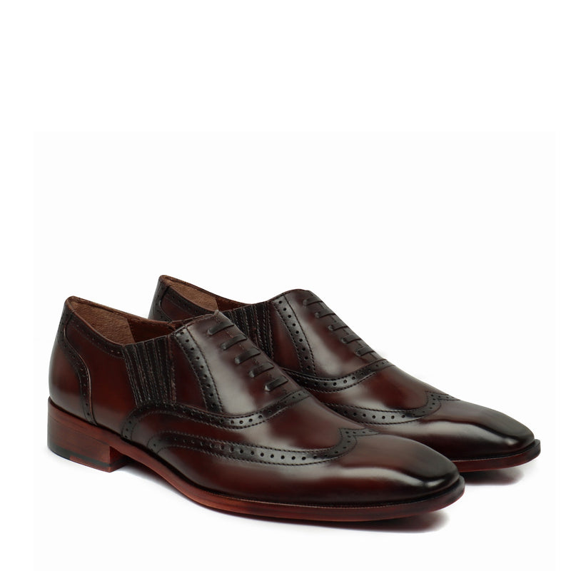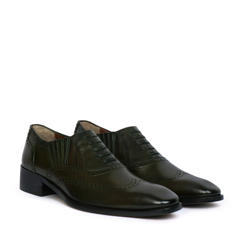 Dual Tone Wine Olive-Green Lazy Man Stylish Wingtip Punching with Fixed Lace Oxfords by Brune & Bareskin