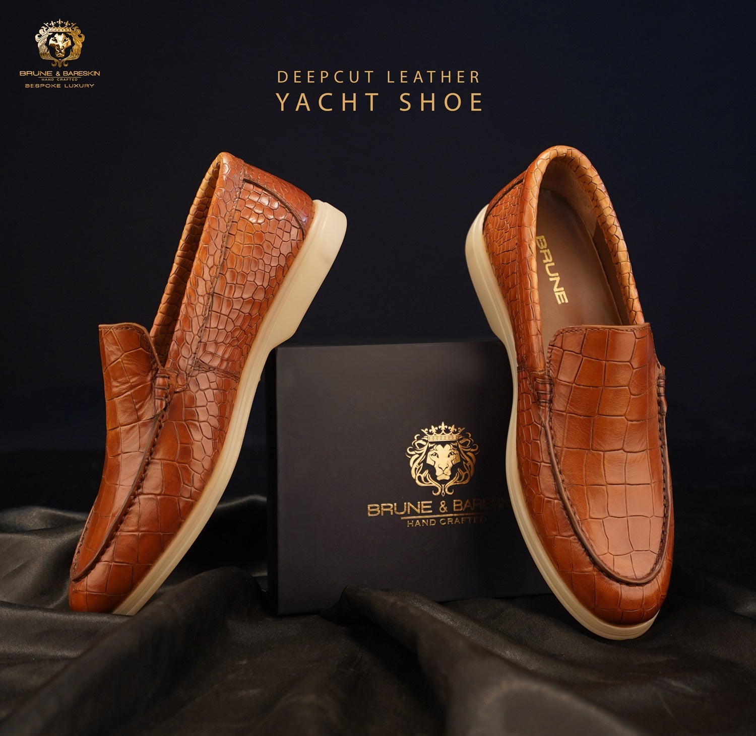 Yacht Slip-On Shoes in Deep Cut Croco Tan Leather