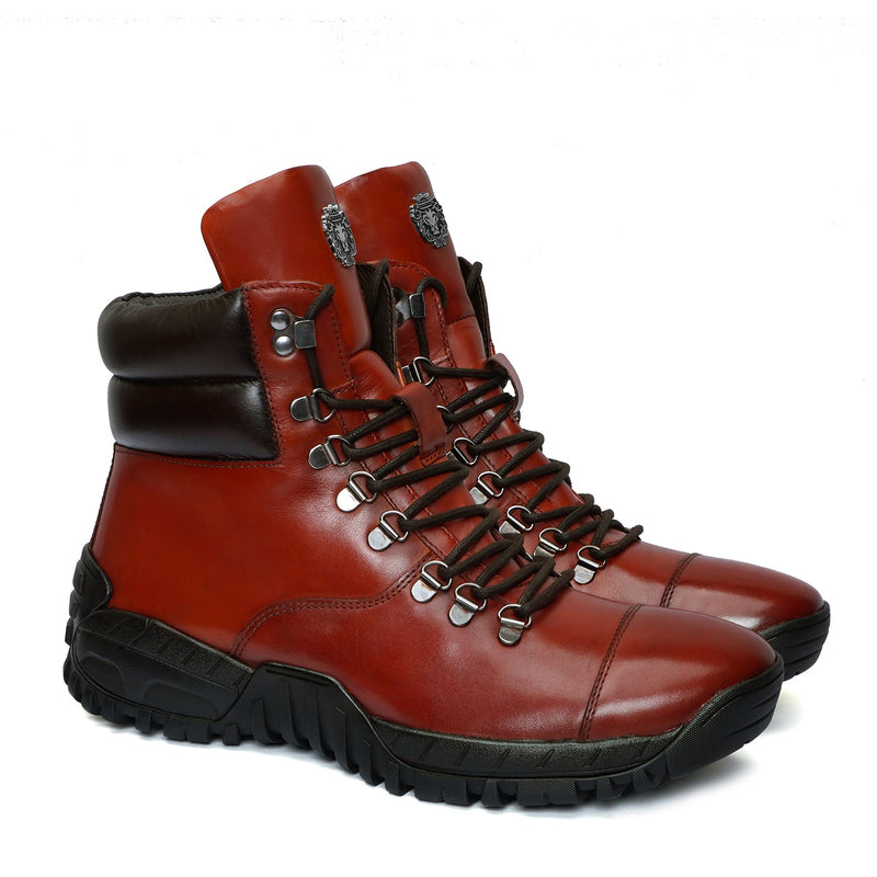 Get ready to conquer any terrain with our Black High Ankle Leather Military Boots! These boots are made for adventure with their genuine leather construction, Flex Support technology, and extra grip sole. Keep your feet comfortable and secure with the padded insole and collar, while making a bold statement with our signature metal lion logo. Made in India, these boots are perfect for any risk-taker.