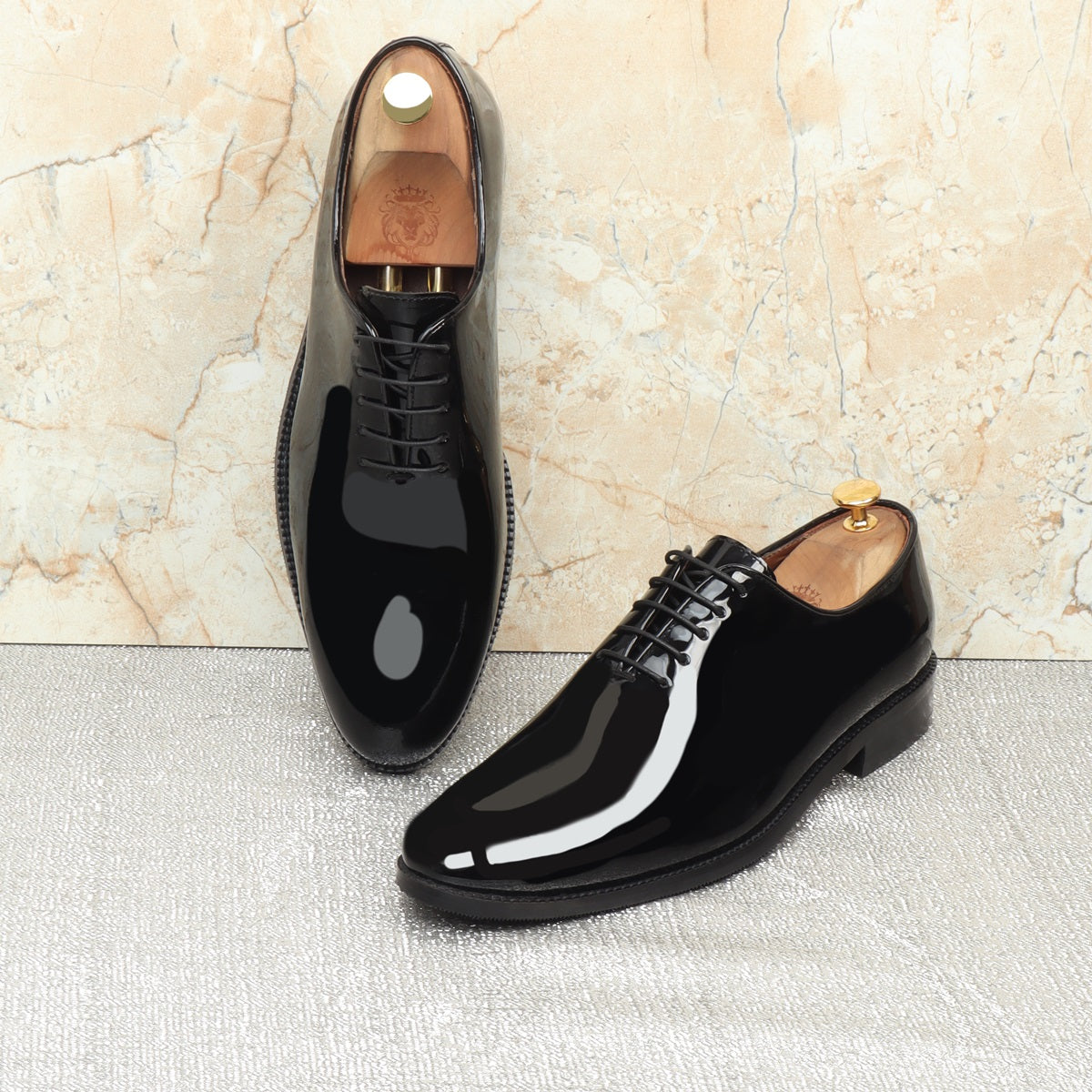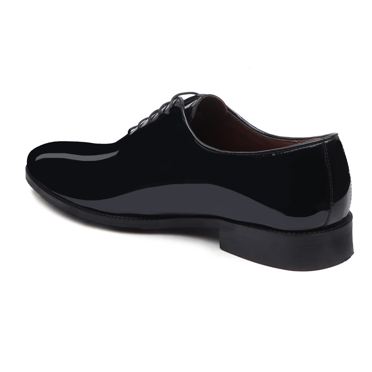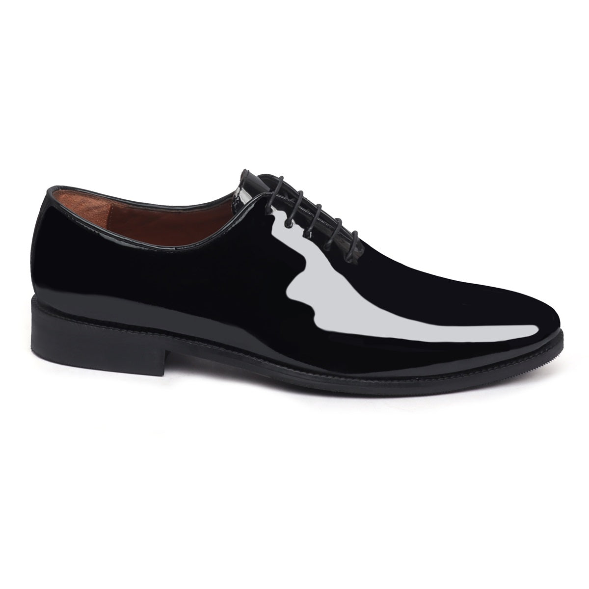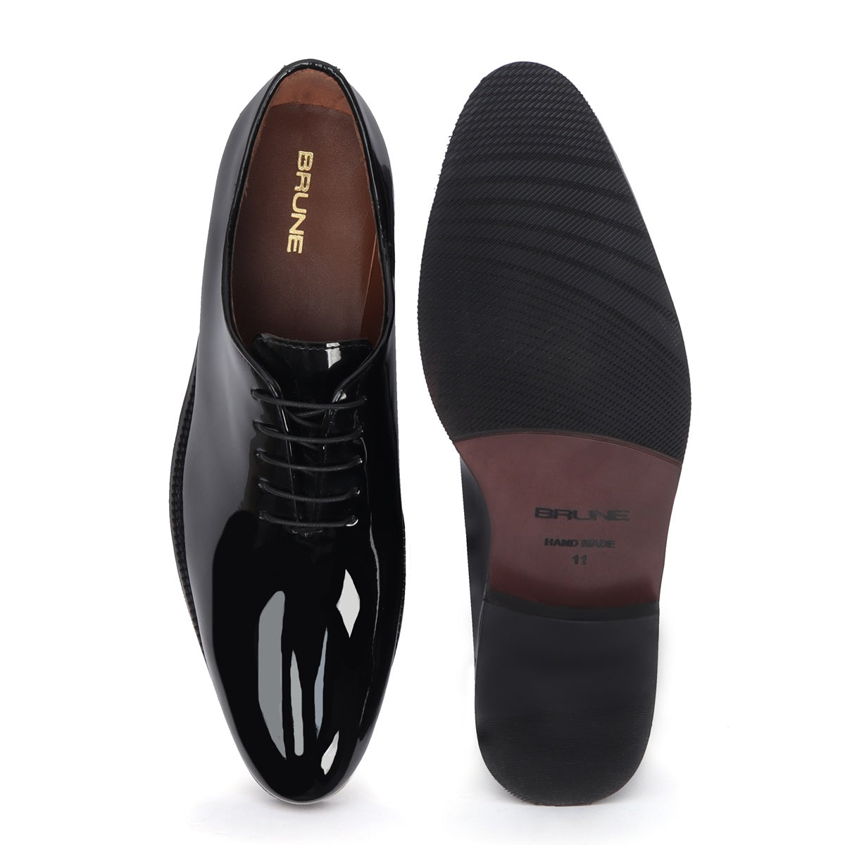 Black Patent Whole Cut/One-Piece Oxford Leather Lace-Up Shoes For Men By Brune & Bareskin