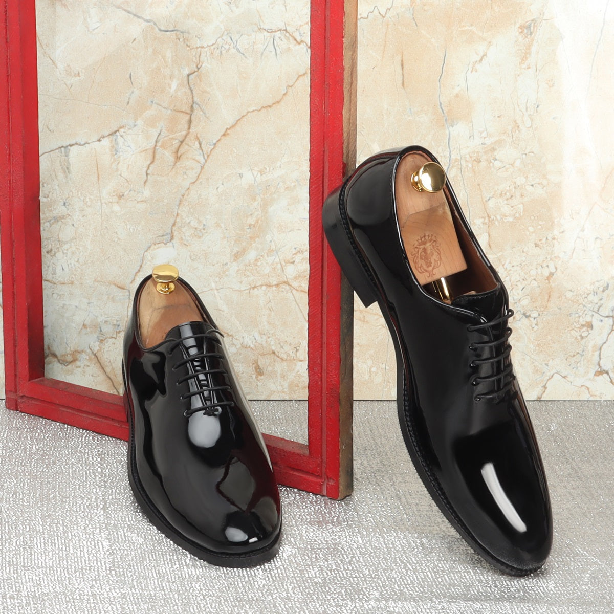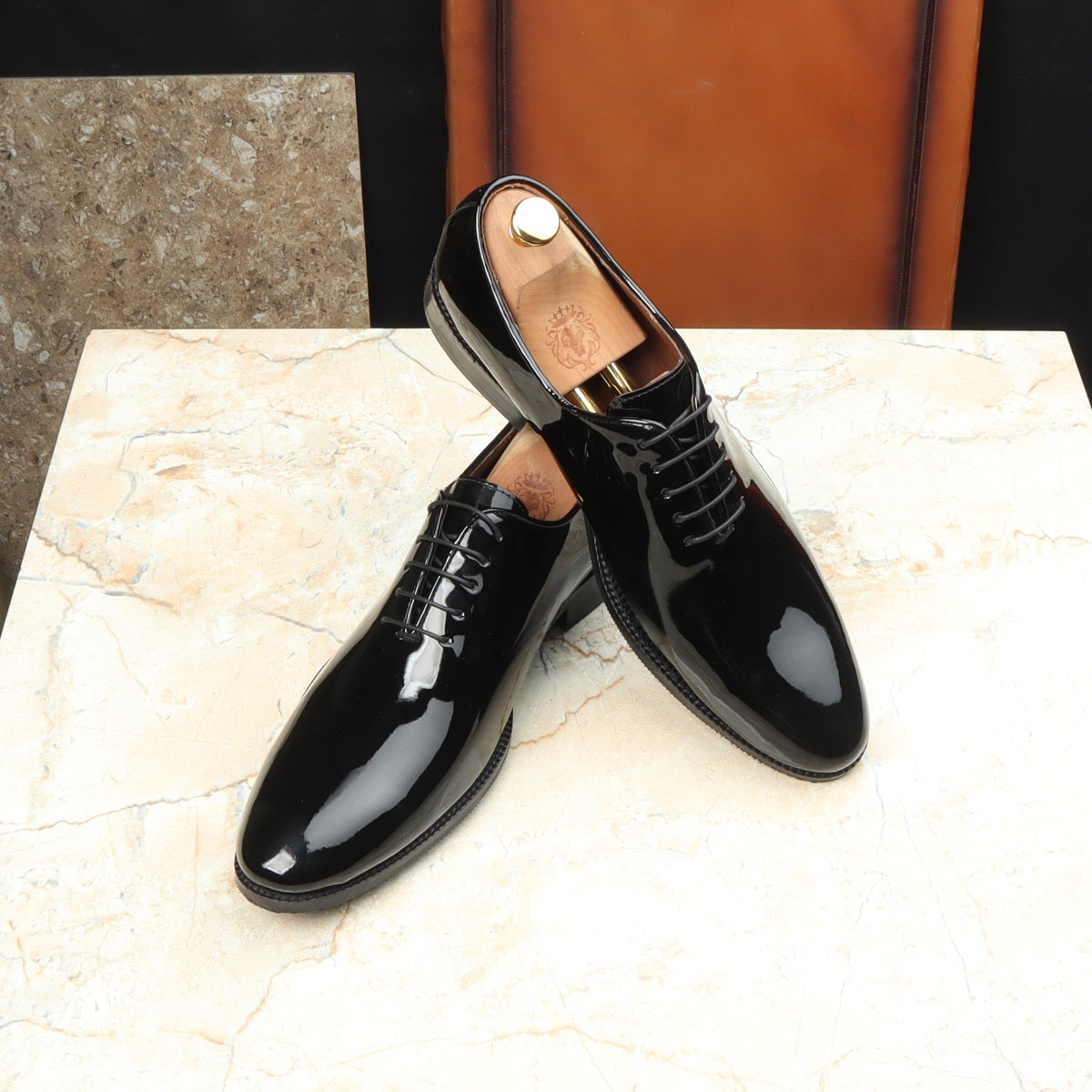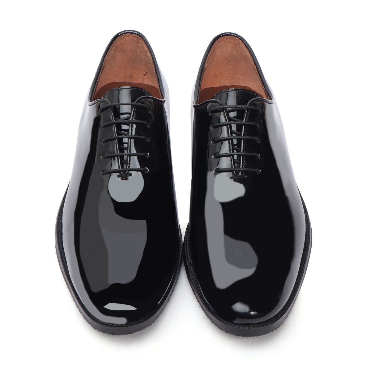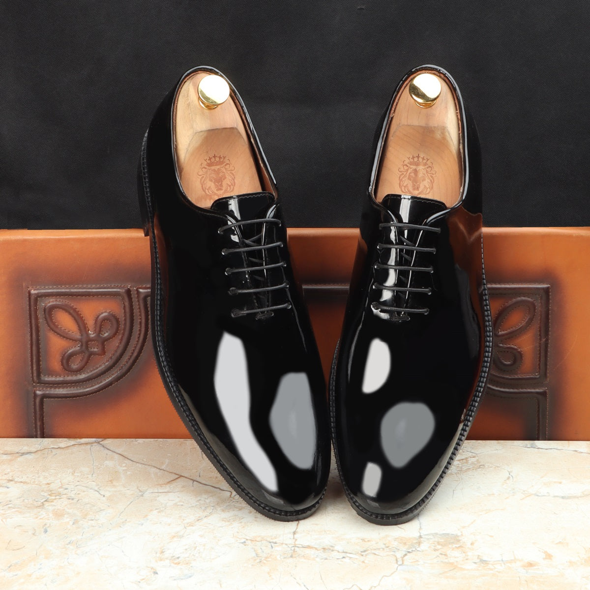 Black Patent Whole Cut/One-Piece Oxford Leather Lace-Up Shoes For Men By Brune & Bareskin