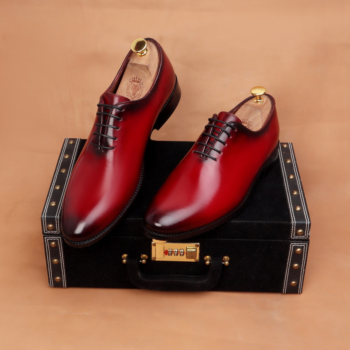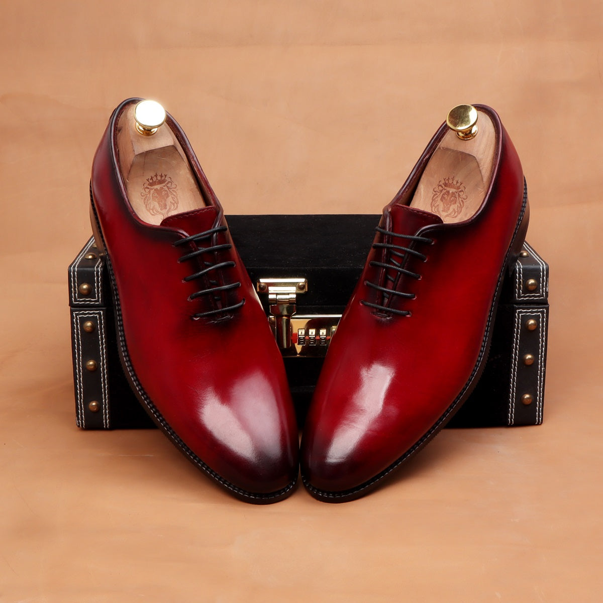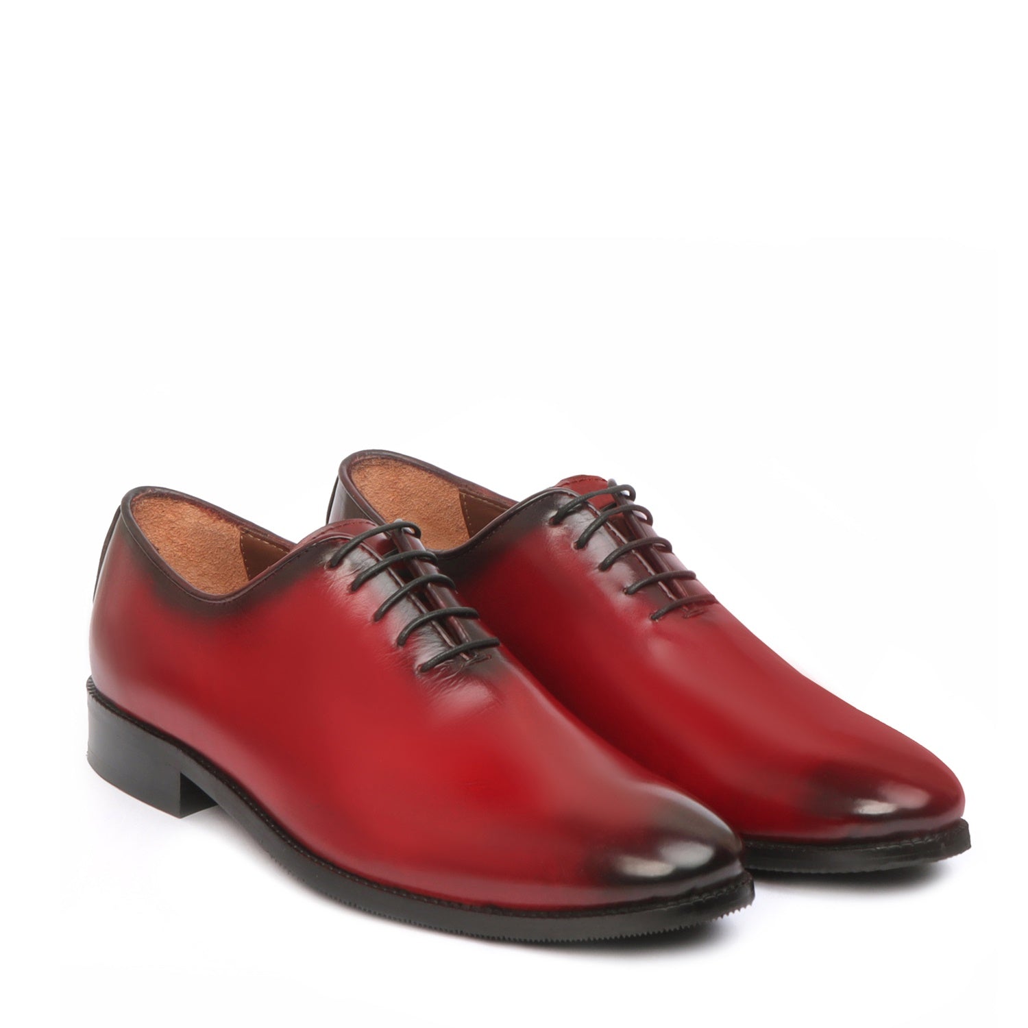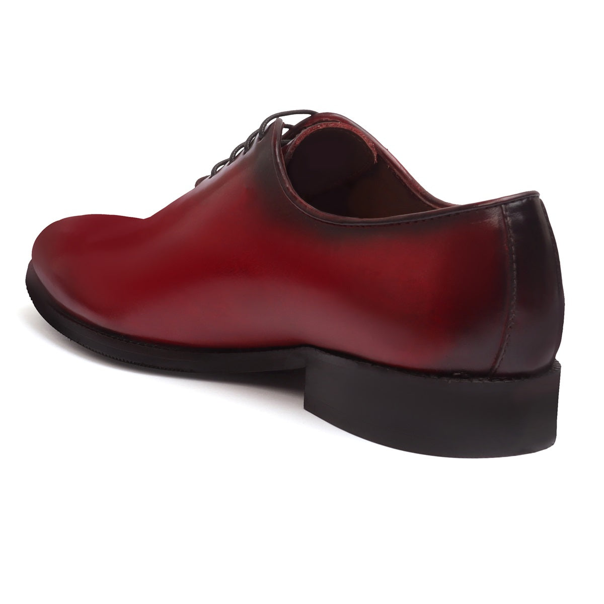Burnished Wine Hand Painted Whole Cut/One-Piece Oxford Leather Shoes For Men By Brune & Bareskin