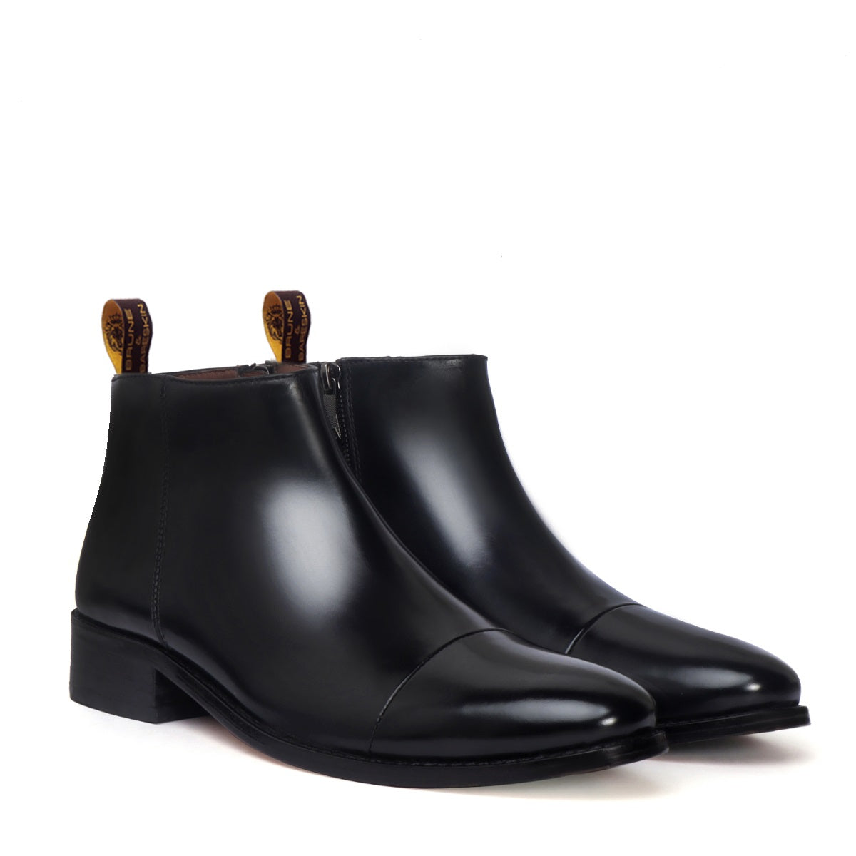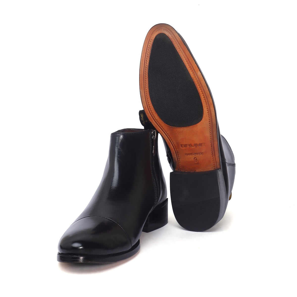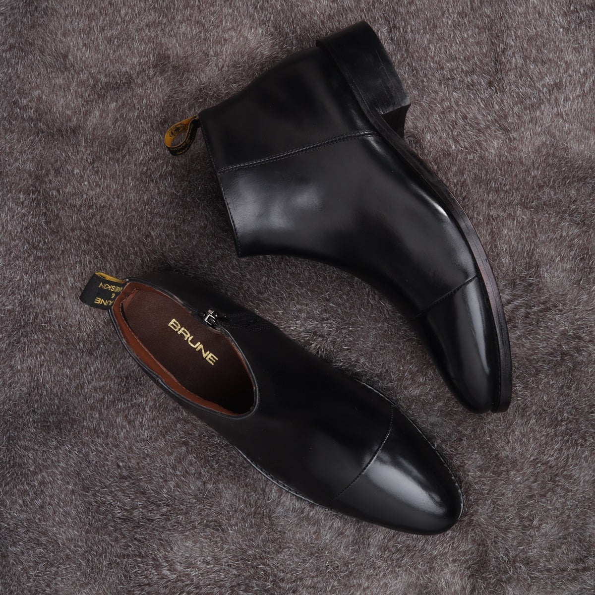 Black Leather High Ankle Chelsea Boots with Leather Sole one and only by Brune & Bareskin