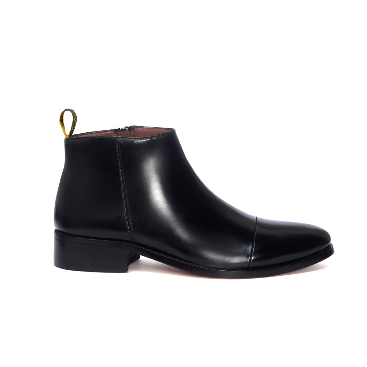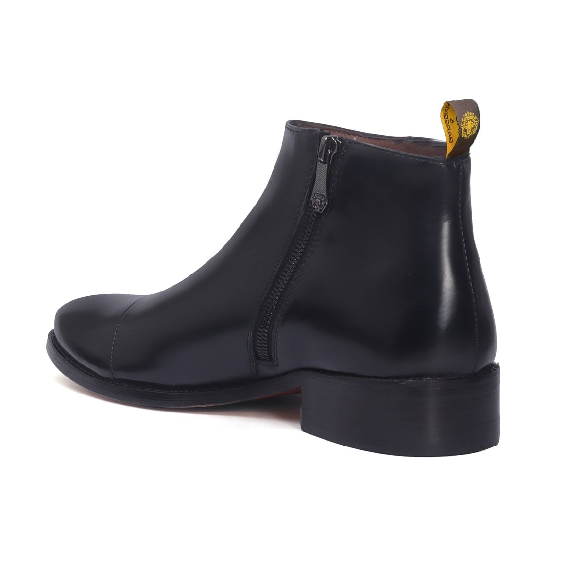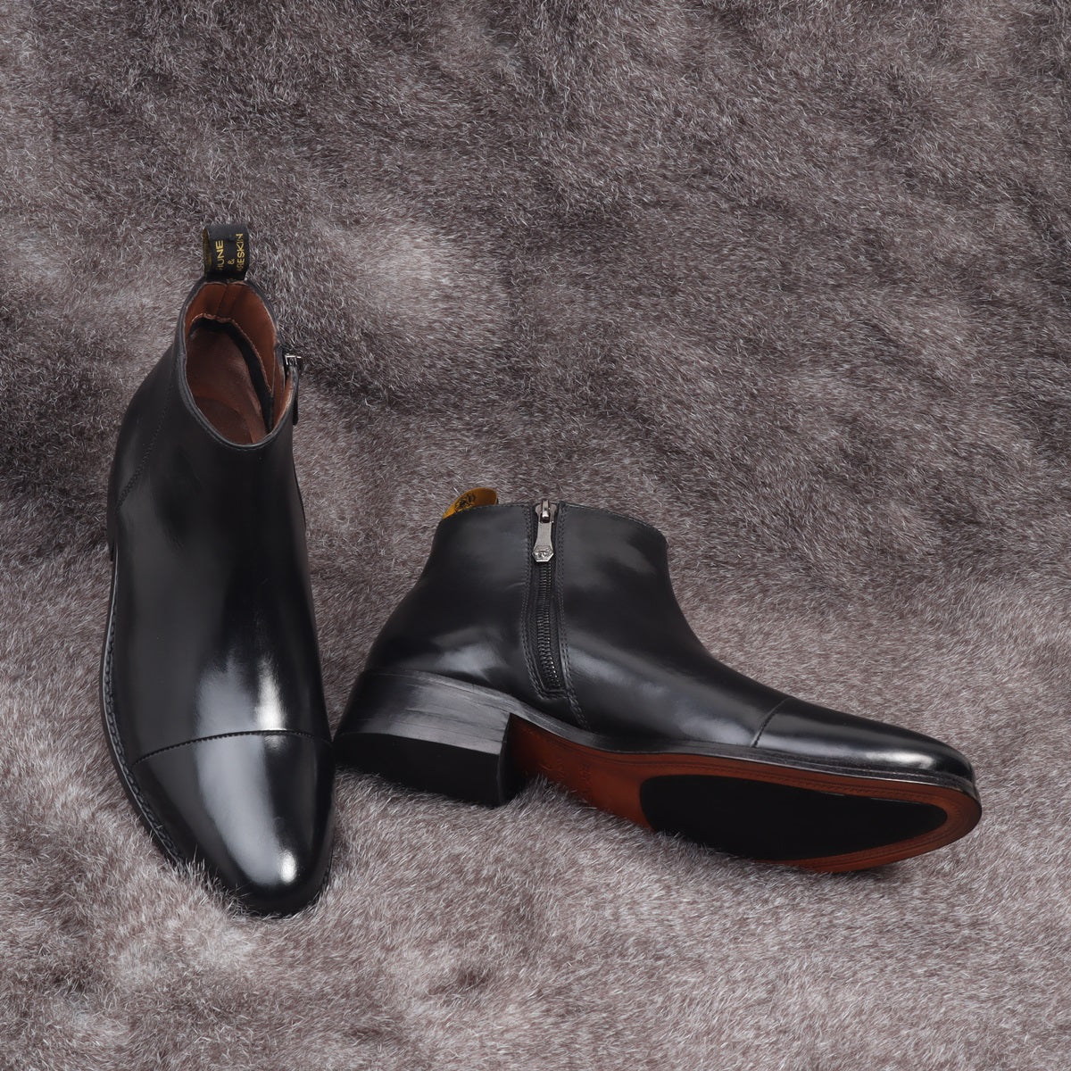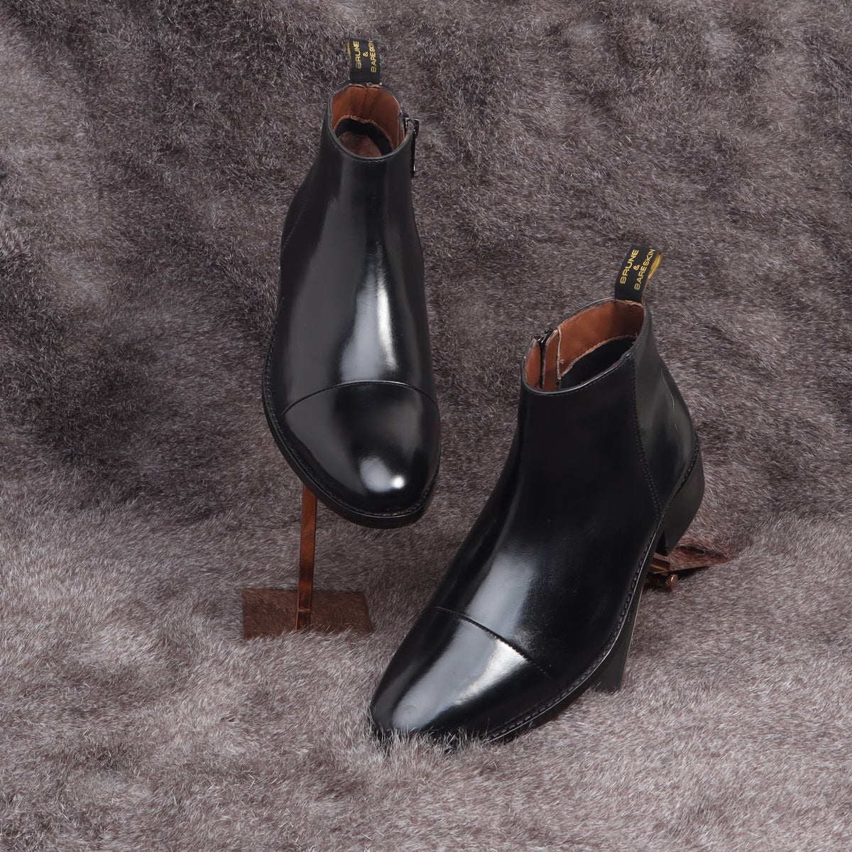 Chelsea Boots are known to the Victorian era. We craft these high ankle black leather boots to give you an elite look. This shoe can be customized according to your liking. These Black leather boots are a perfect piece of style and trend. These boots provide the distinct and sassy look. These ankle-length shoes are fitted shoes that emphasize the size and shape of your feet to perfection. The deep detailing with leather sole and zip closure lend a classy look to these formal shoes. Wear it and make a remember-able mark of fashion. Pair these modernized classic Chelsea Boots with formals as well as casuals to leave unforgettable style marks. You can customize this chic boots in any of your favorite color with our bespoke services.