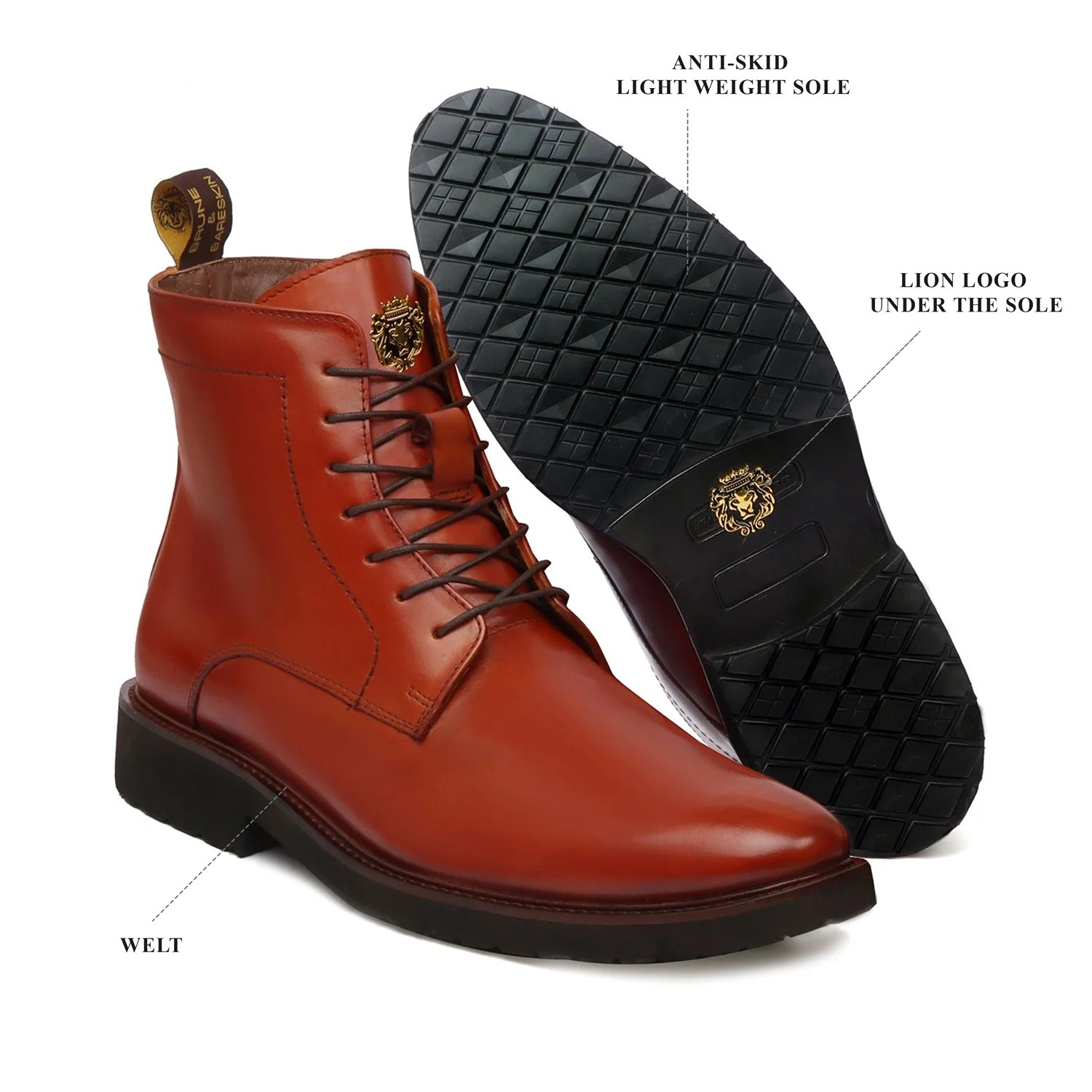 High Ankle Tan Leather Boots Derby Lace-Up Closure by Brune & Bareskin