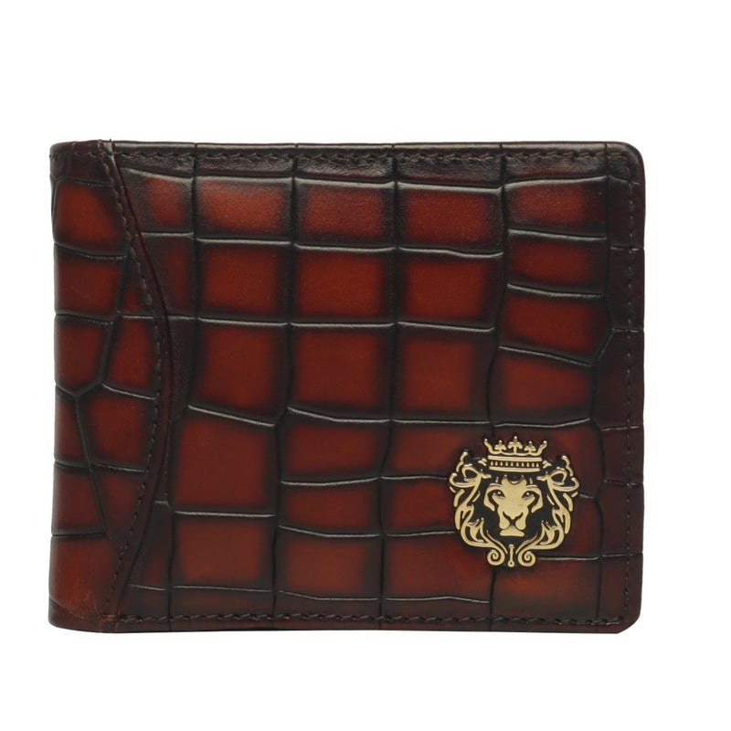 This bi-fold Grey Deep Cut Croco leather wallet with hand painted Smokey finish looks very elegant. The BRUNE & BARESKIN signature metal Lion brand logo increases the style quotient. Bi-fold opening wallet features two main pockets along with small secure pocket on both sides. It has the total of 10 pockets, which makes it a perfect buy for today's generation. It provides the style and storage with artistic Patina regime leather color shades. You can get it personalized and customized with any color shade & name initials with our bespoke services.