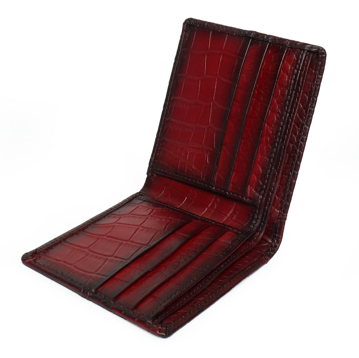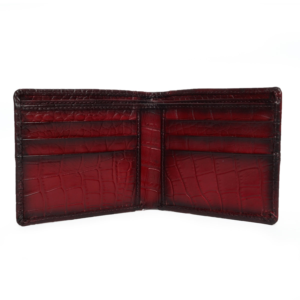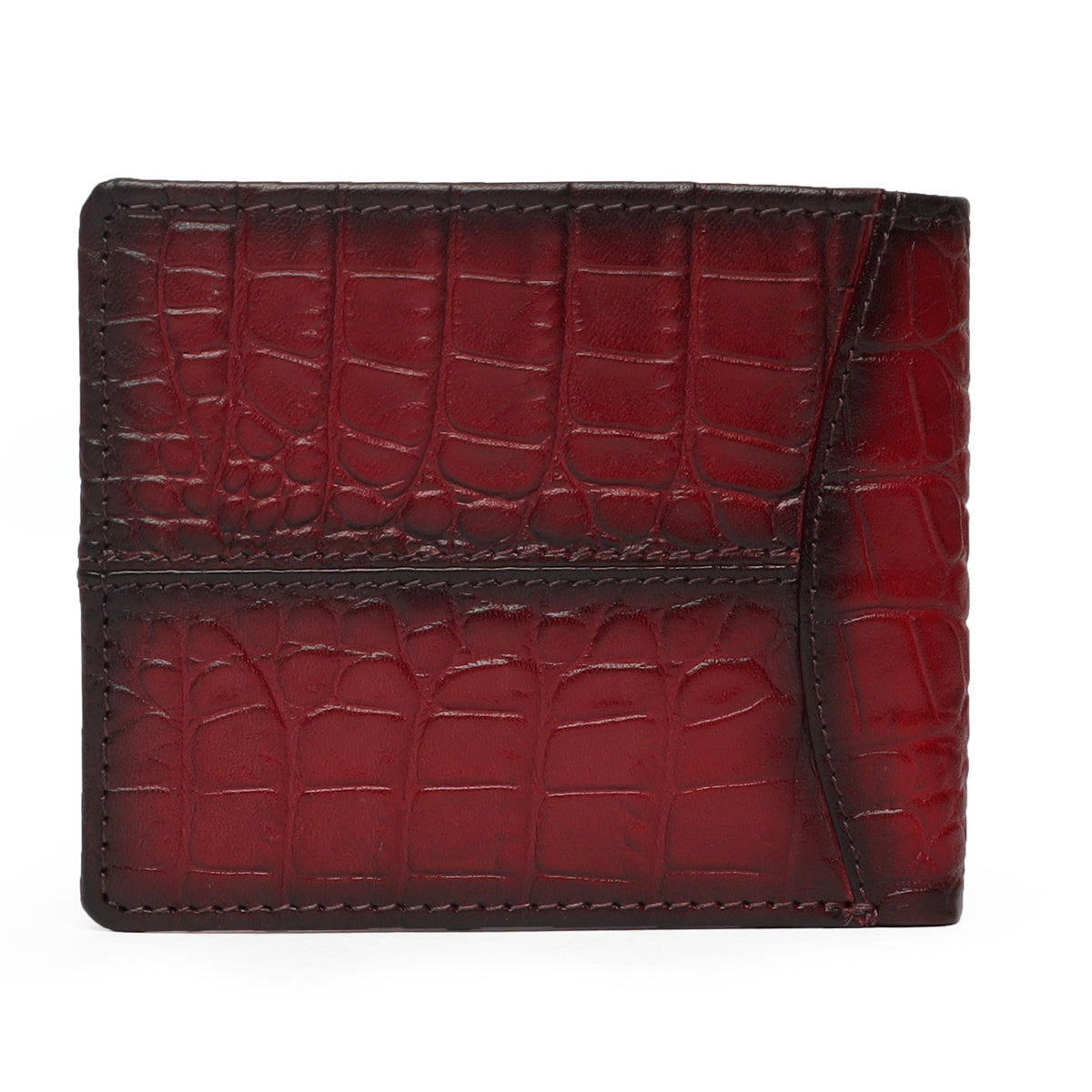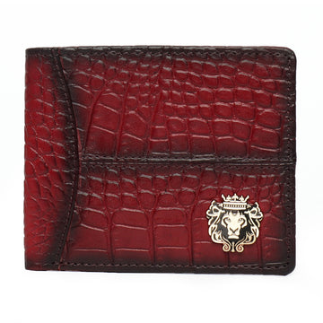 Wine Deep Cut Croco Print Leather Wallet for Men By Brune & Bareskin