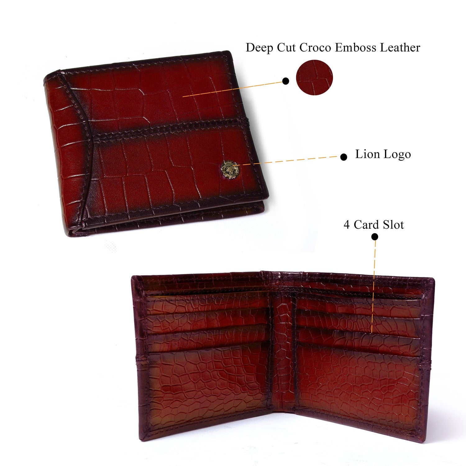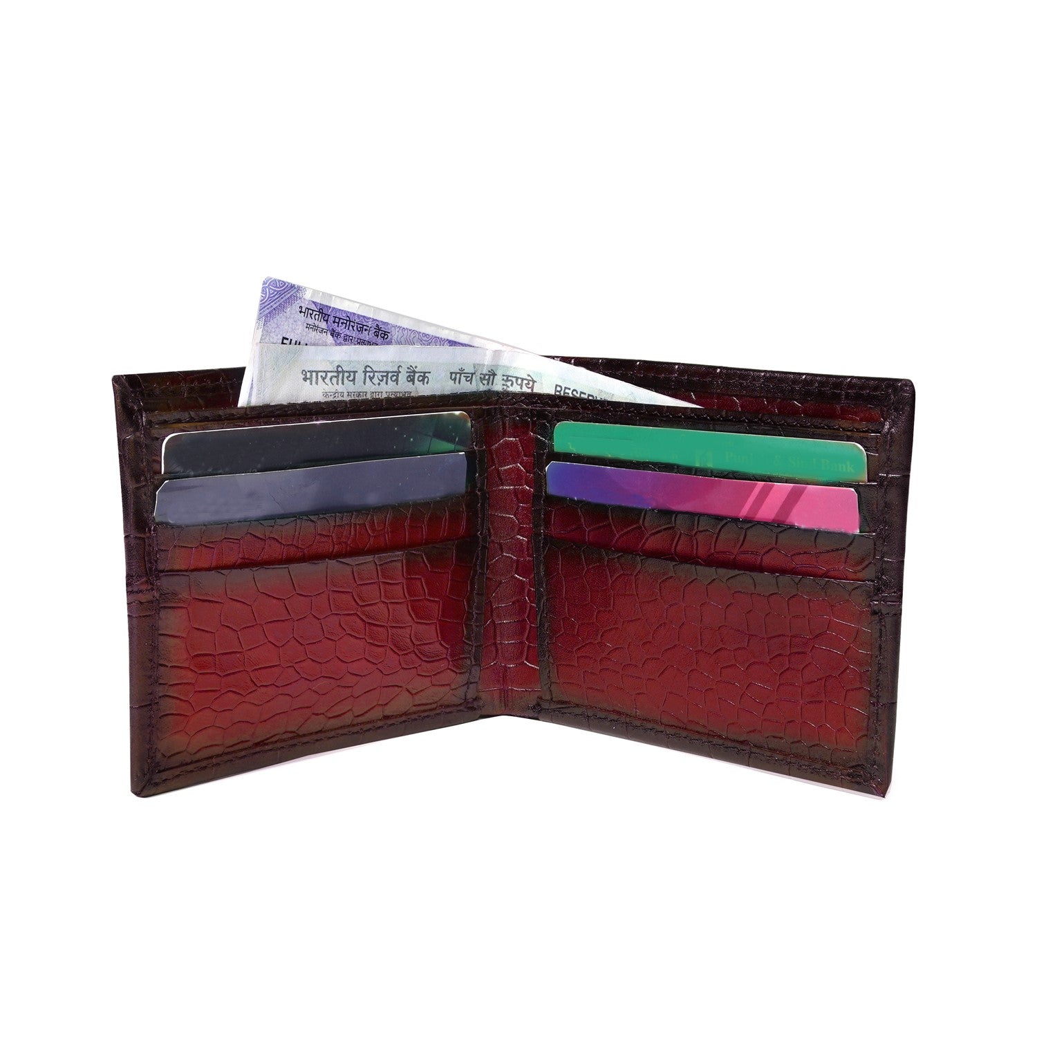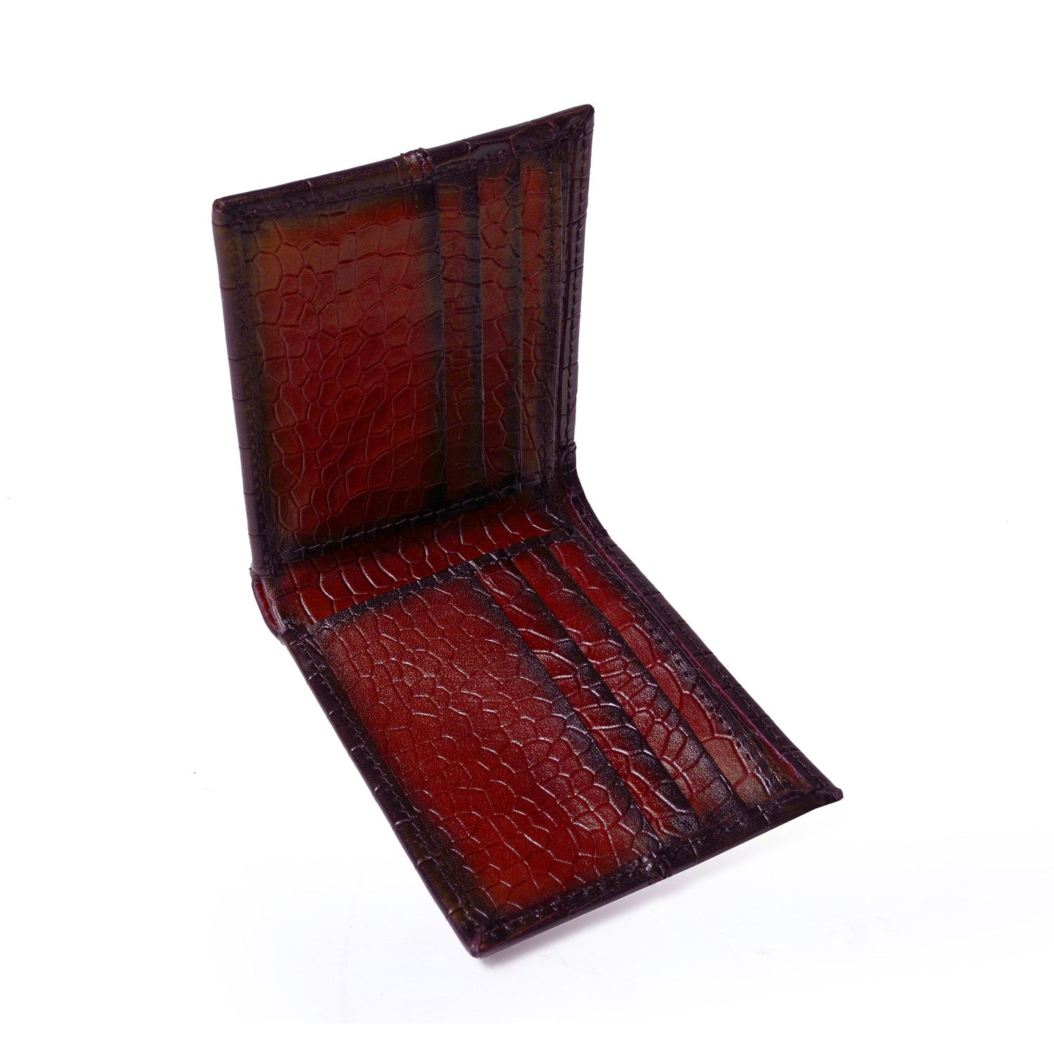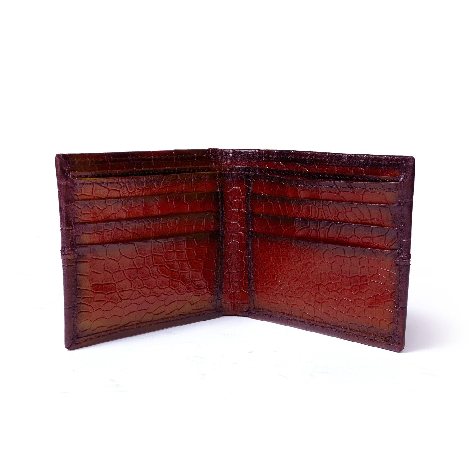 Wine Deep Cut Croco Print Leather Wallet for Men By Brune & Bareskin