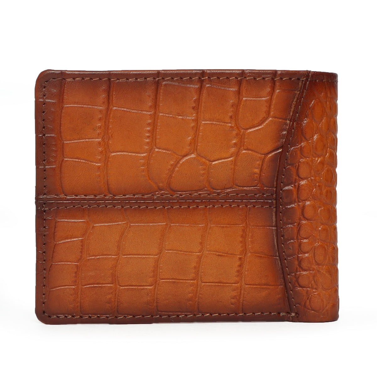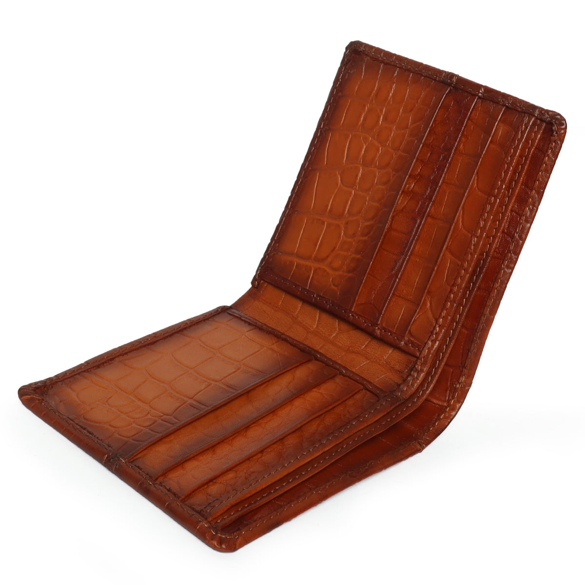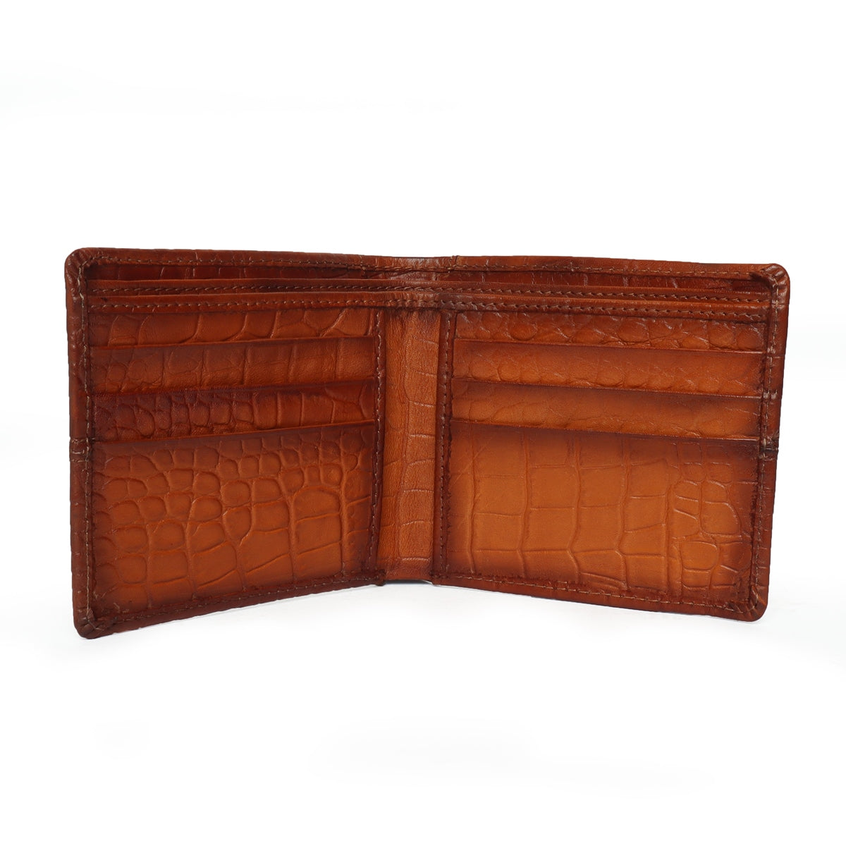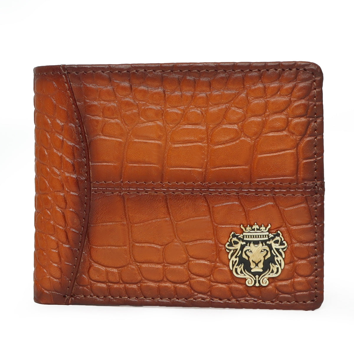 This bi-fold Tan Croco print leather wallet with darker smudged edges looks very elegant. The BRUNE & BARESKIN signature metal Lion brand logo increases the style quotient. Bi-fold opening wallet features two main pockets along with small secure pocket on both sides. Tan leather with a polyester lining and features 3 card slot on Both side, and two full length pockets for notes. It has a total of 8 pockets, which makes it a perfect buy for today's generation. It provides the style and storage with artistic Patina regime leather color shades.