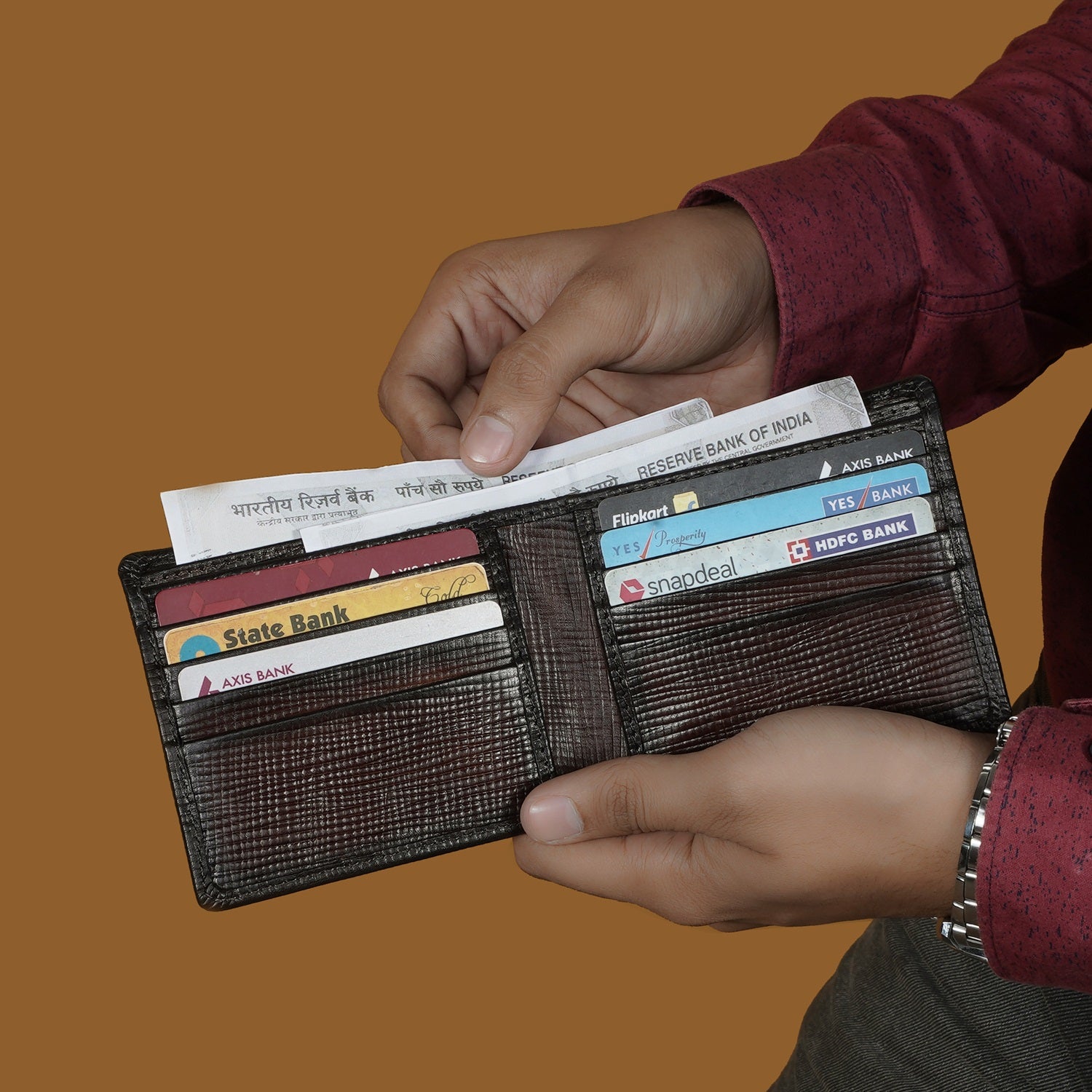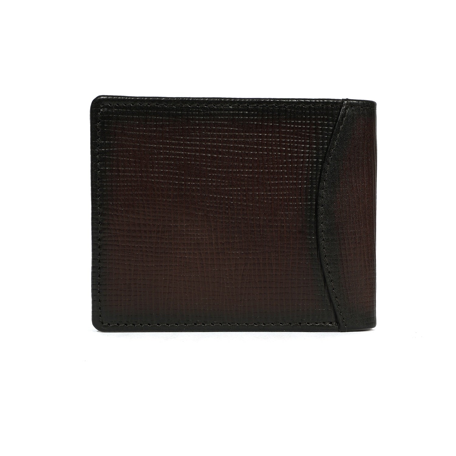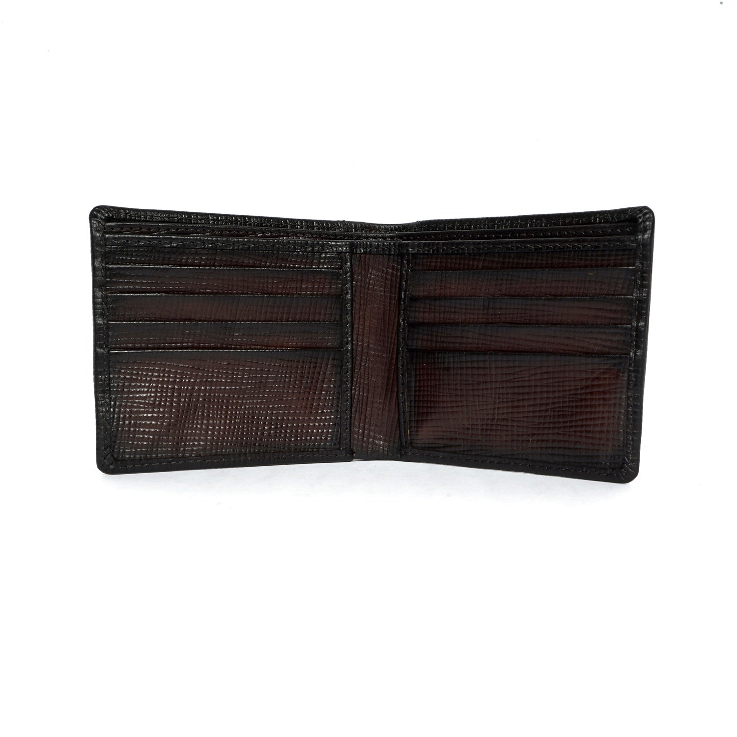 Dark Brown Bi-Fold Wallet in Textured Saffiano Leather