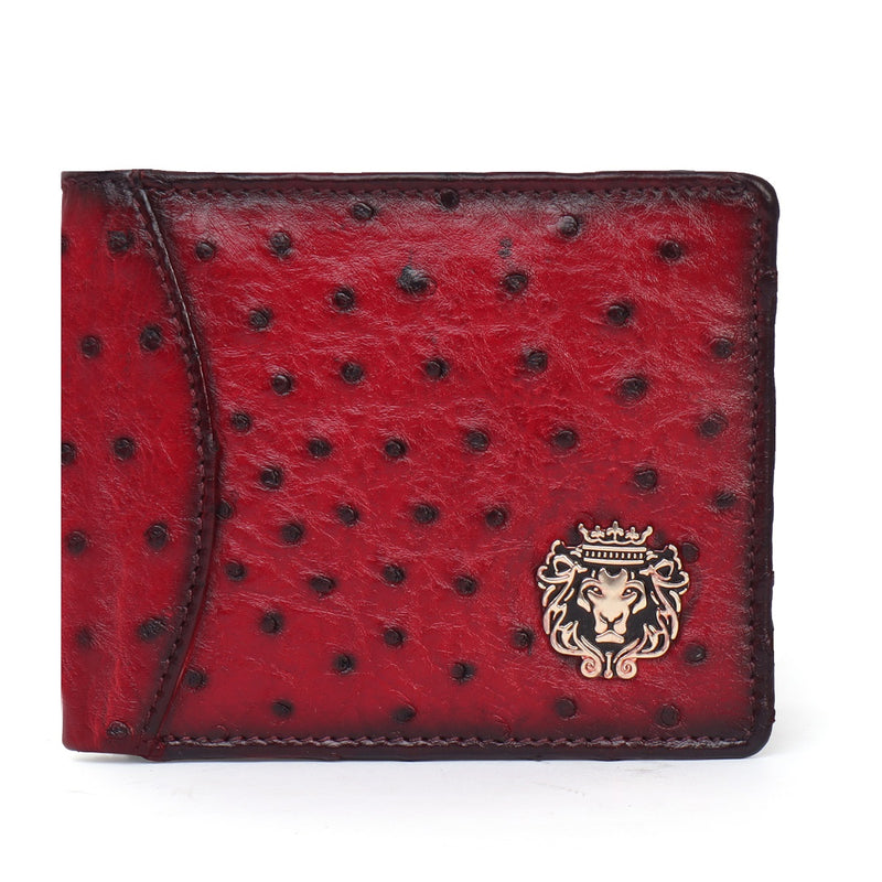 Black Ostrich Leather Wallet With Golden Metal Lion Logo