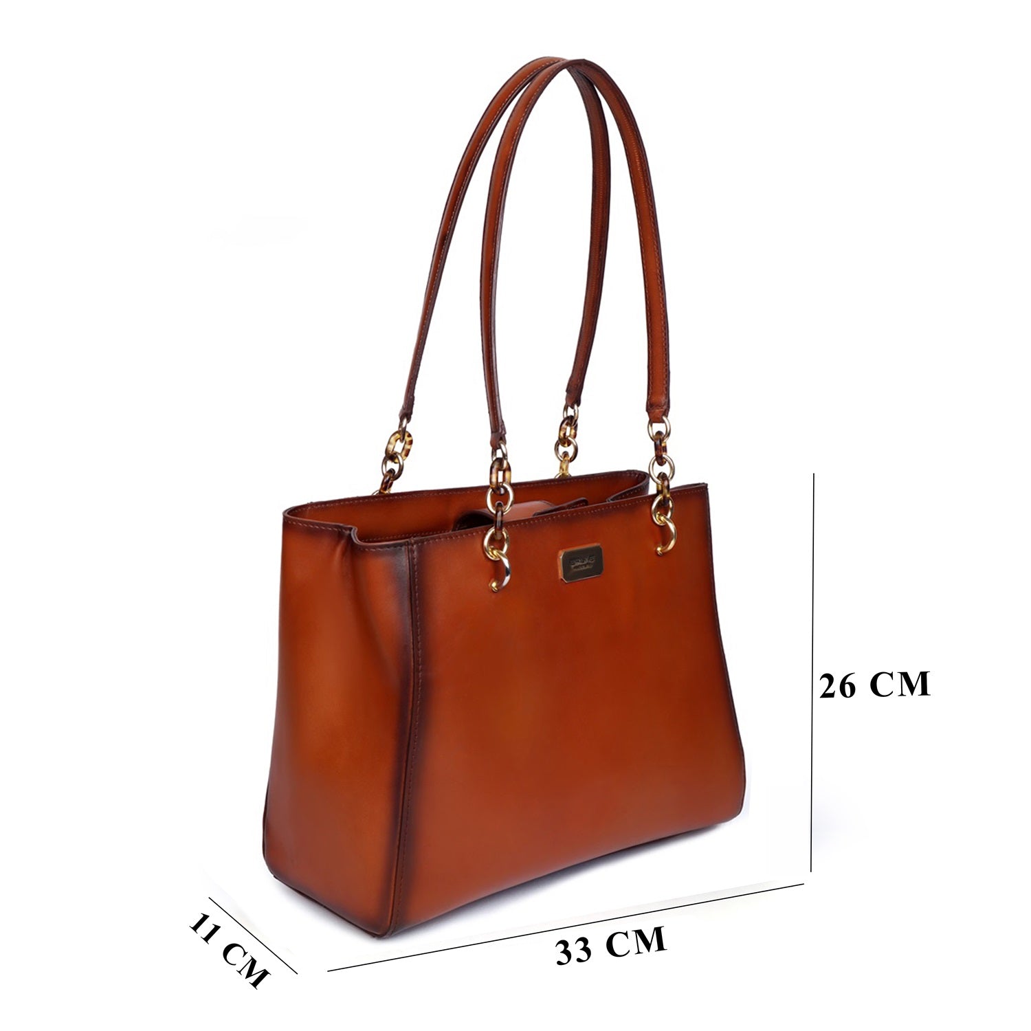 This Tan Women Handbag is one of the most easiest to carry along with spacious space. It is perfect for a long day out shopping. The ample space with multiple pockets allows it to carry for travelling. The main button compartment provides the extra security to it. The different size pockets provide the advantage to put things accordingly. This hand bag can be personalized with your name initials in any color shade with our bespoke services. This is a must-have addition to your fashion collection. What are you waiting for? You can click on CUSTOMIZE NOW Button (Just above the "ADD TO CART" button) & fill out the form to submit your customization requirements. Or you can reach us by Call, Email, What's App, and DM.