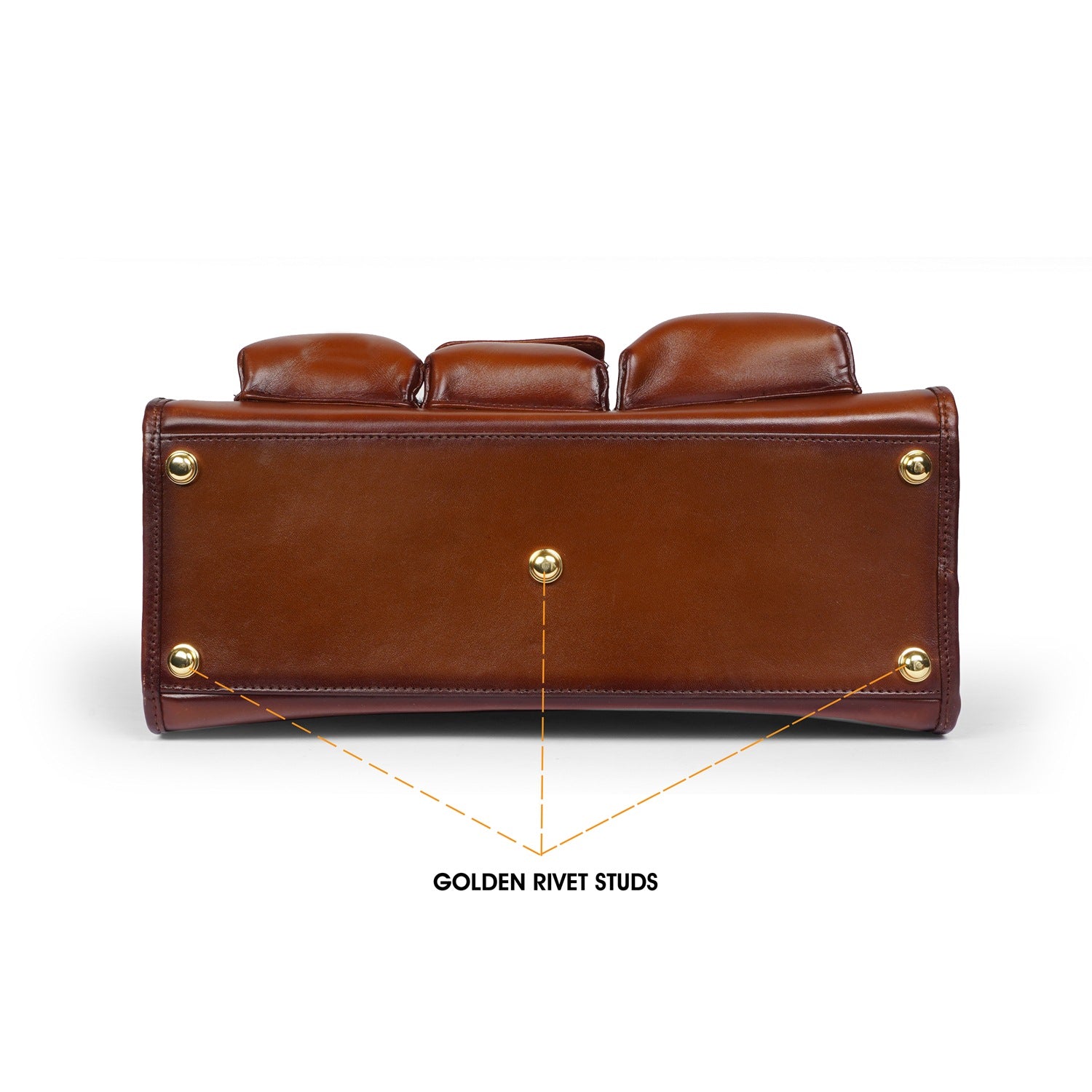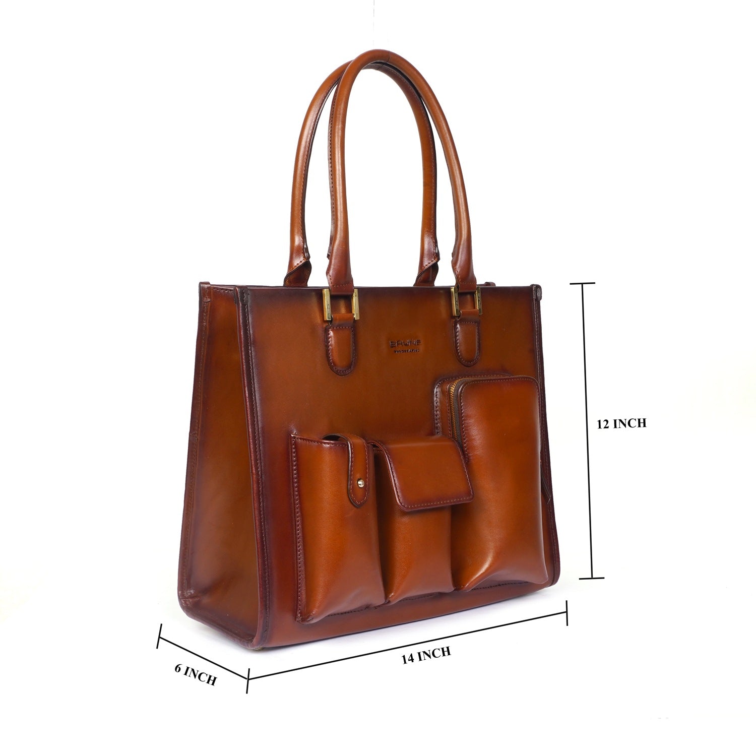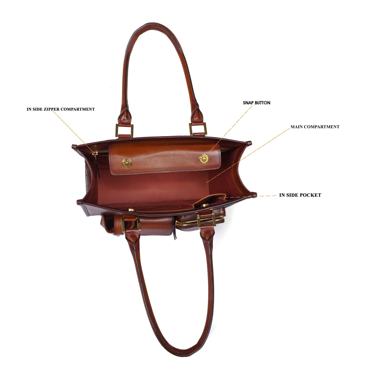 Fashion Forward Multi Pockets Ladies Handbag in Tan Leather
