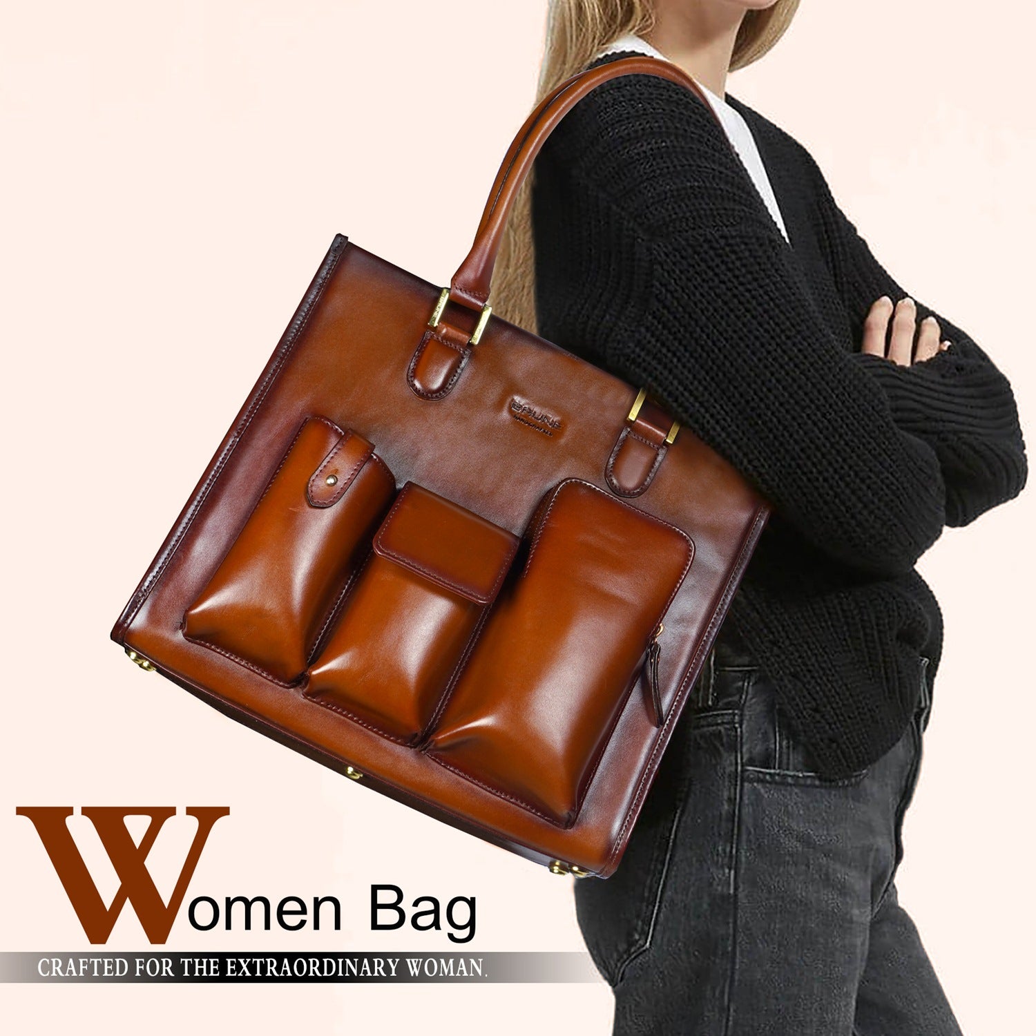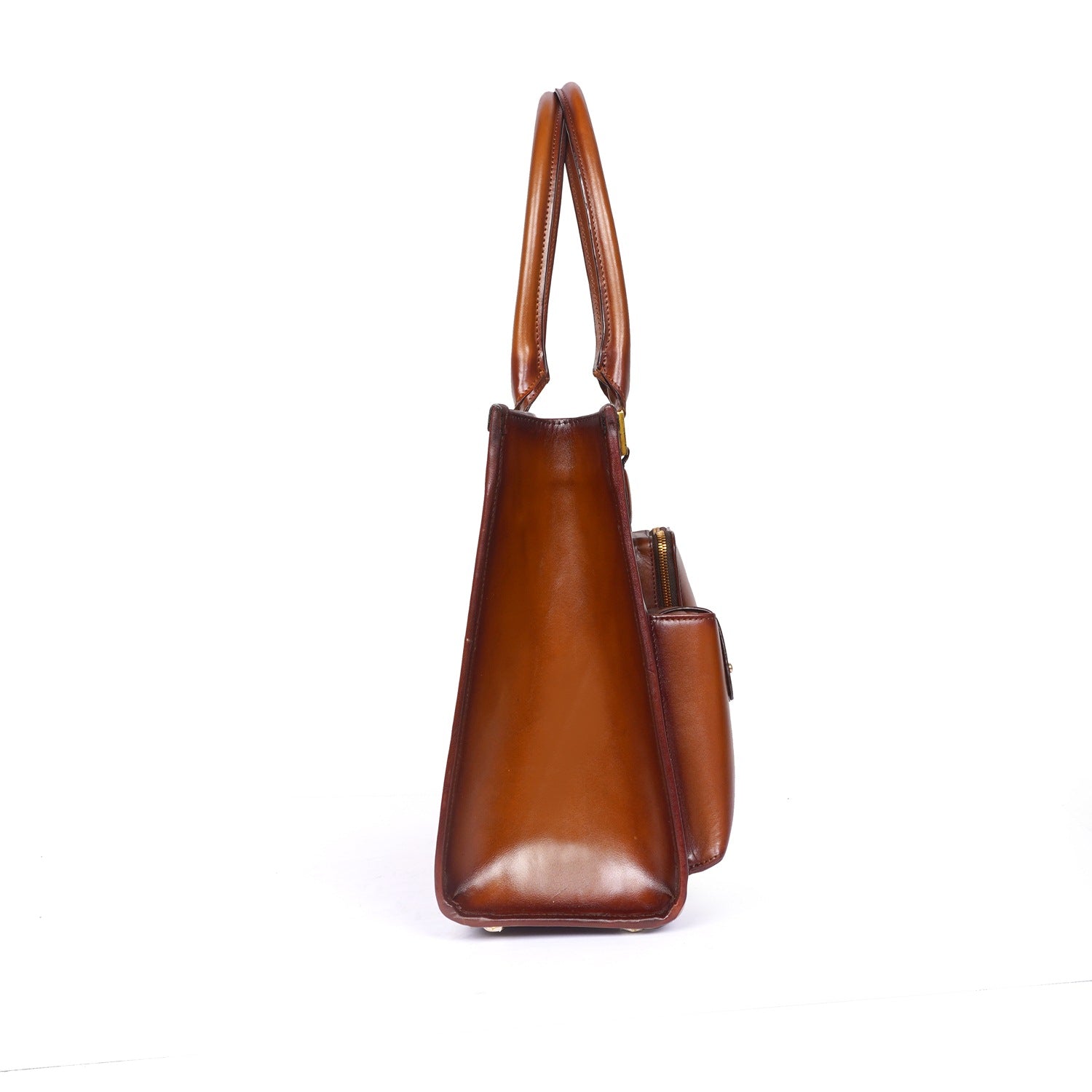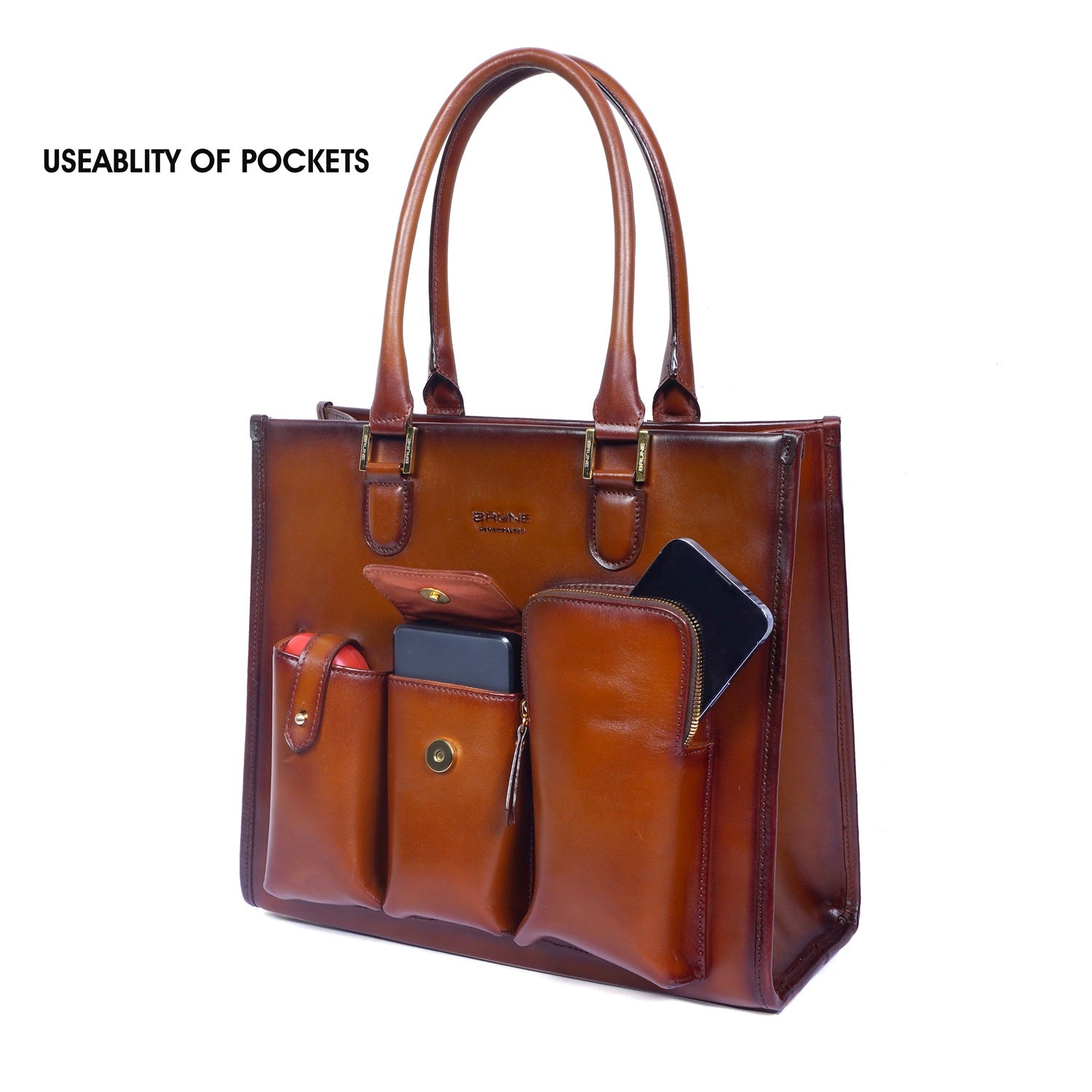 Fashion Forward Multi Pockets Ladies Handbag in Tan Leather