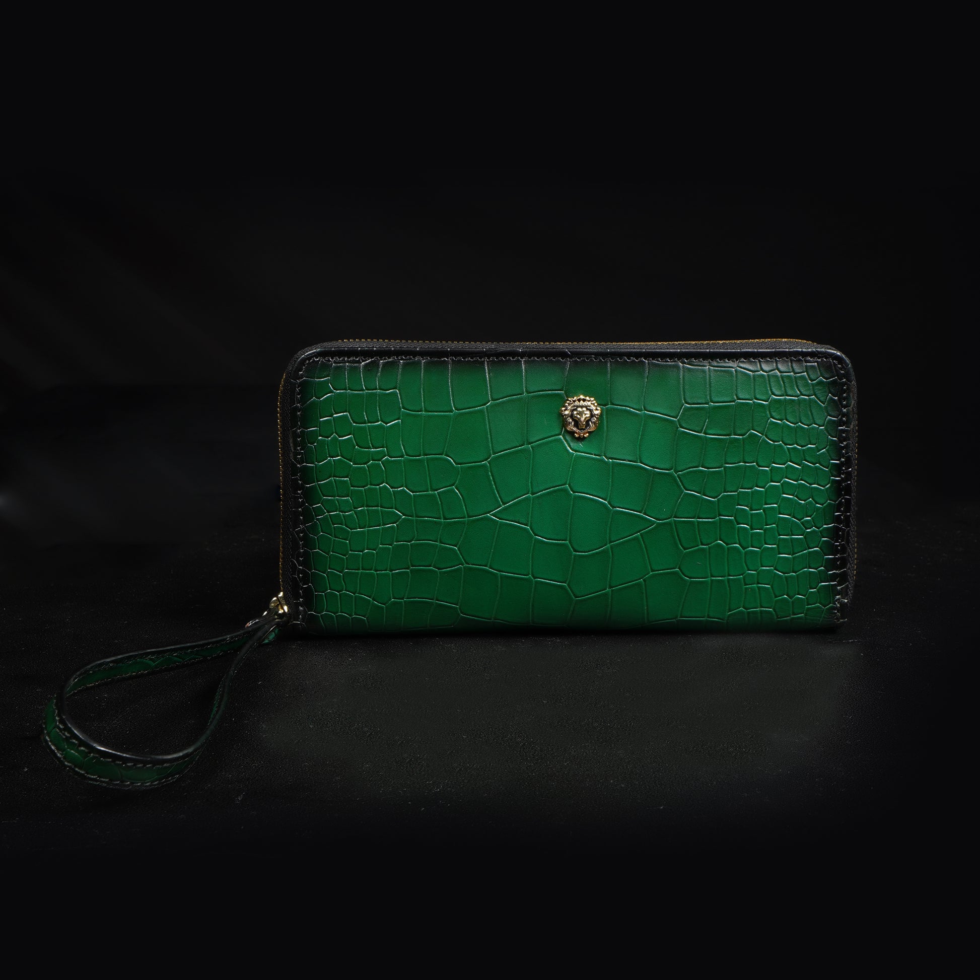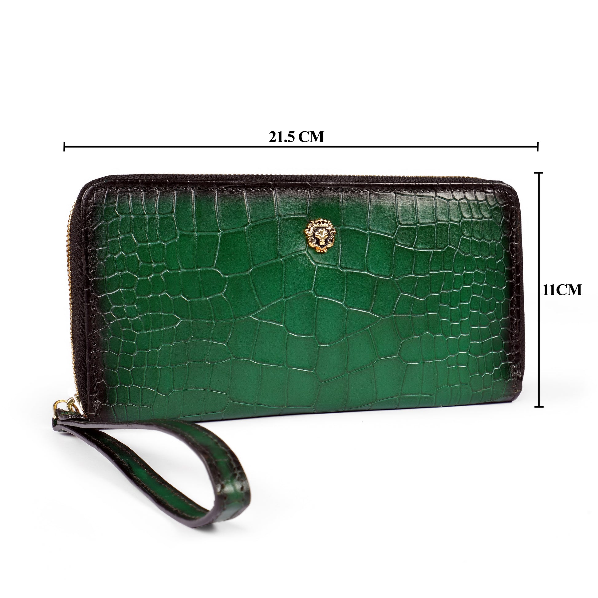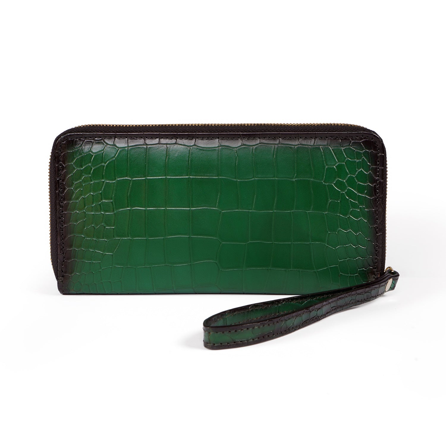 Green Deep Cut Croco Print Leather Ladies Multi-Utility Hand Wallet By Brune & Bareskin