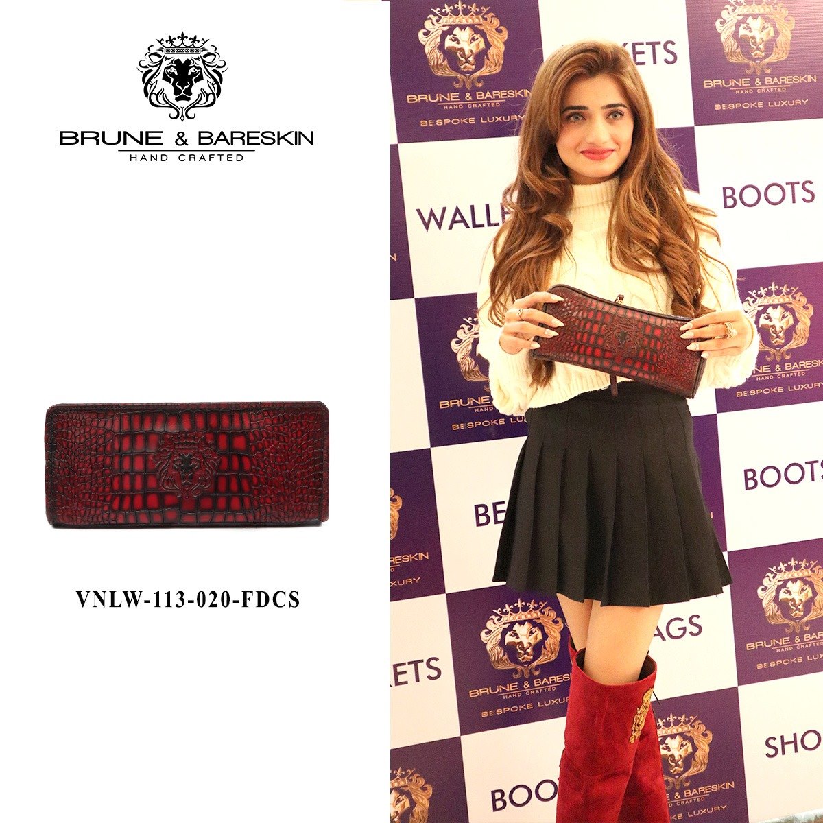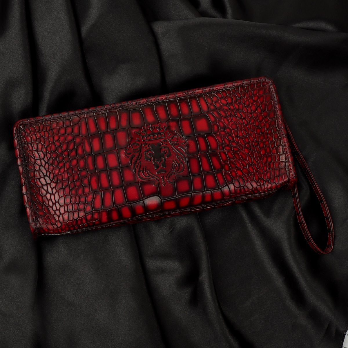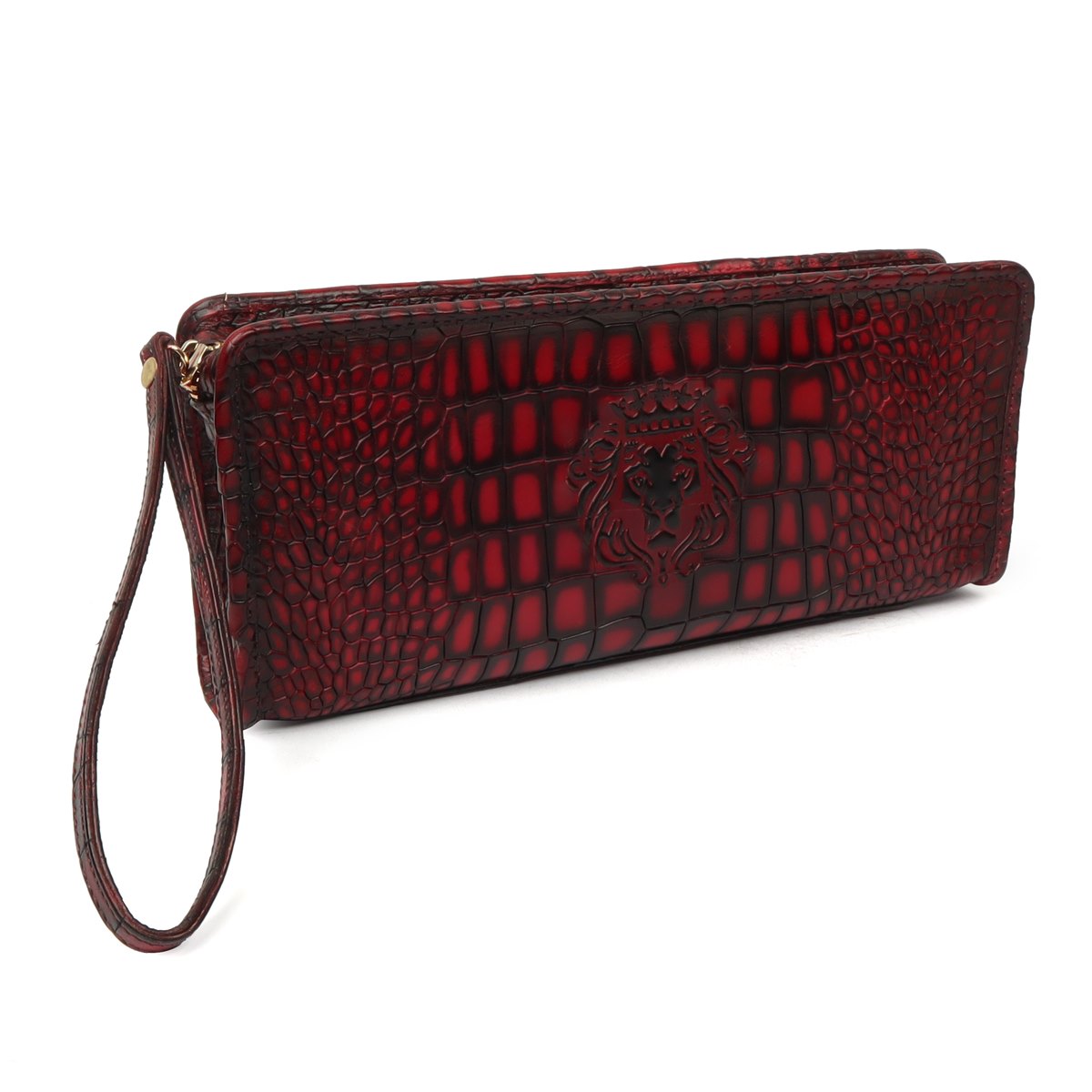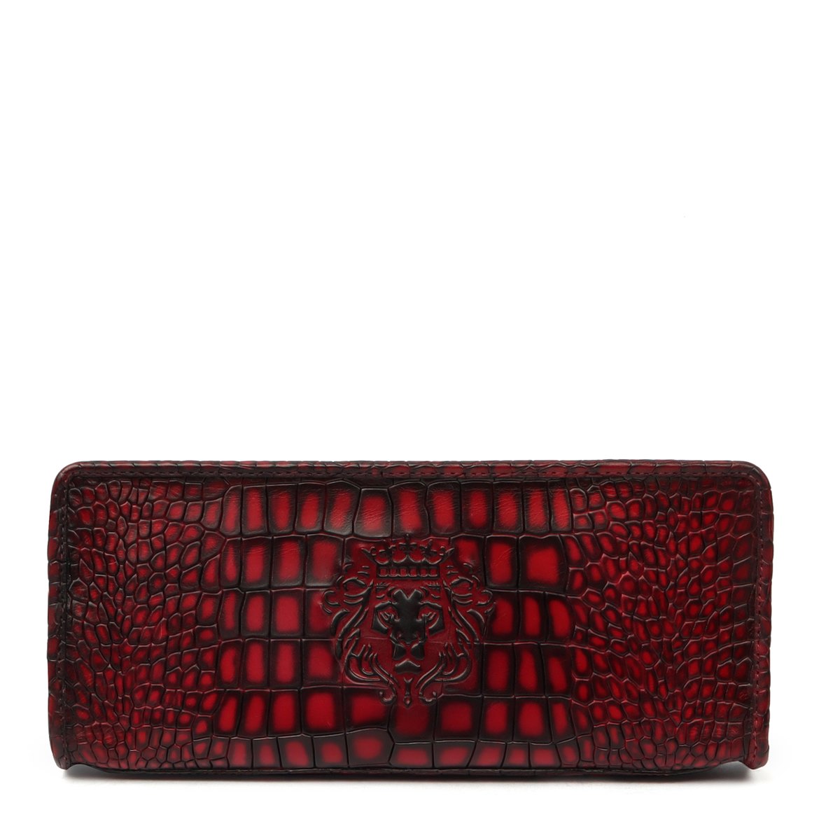 It is a handmade Clutch/Wallet which is crafted with precisely selected Deep Cut Croco Textured Leather. The Wine Smokey patina finish gives it an artistic look. This trendy wallet/clutch from Brune & BARESKIN is specially designed for fashion-conscious women. Made from 100% Genuine Leather, this wallet ensures lasting durability. The Wine Croco print leather long wallet with contrasting smudged edges looks very elegant. Smokey finished in Wine Deep Cut Leather looks lavishing. The Brune & Bareskin Lion Logo provides extra elegance to it. The compact size allows one to carry it effortlessly while traveling. You can change the color and also add your initials with our bespoke services.