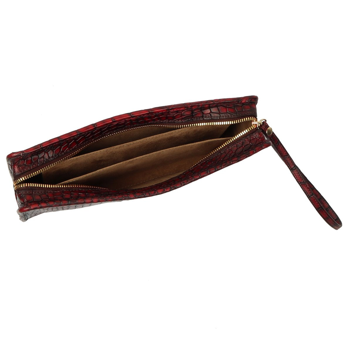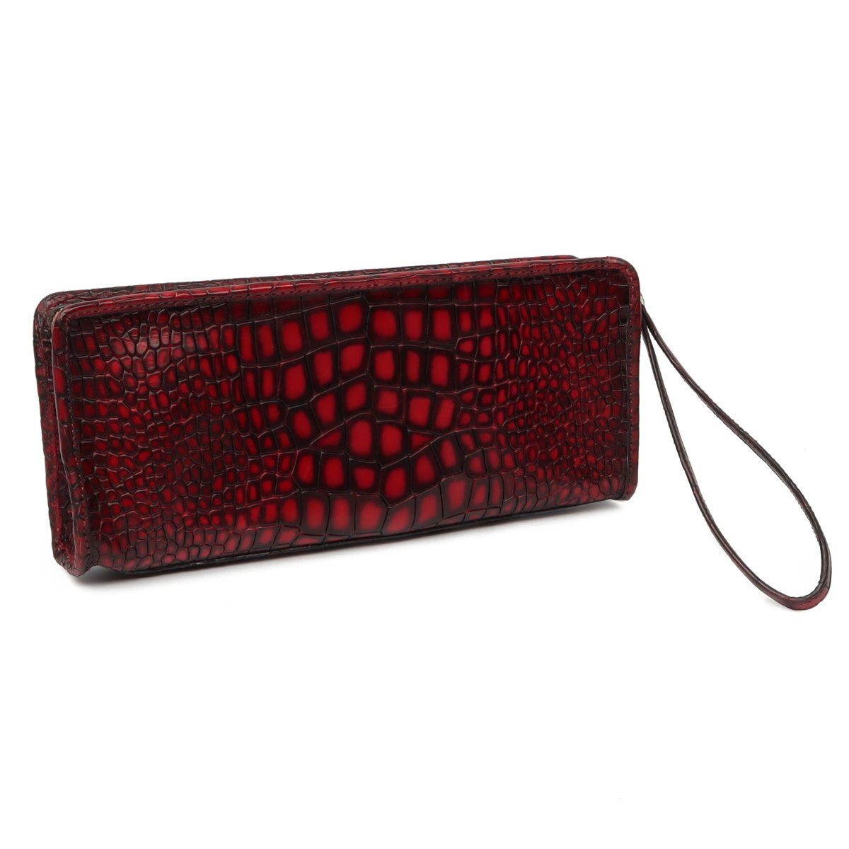 Wine Deep Cut Croco Leather Ladies Multi-Utility Hand Clutch/Wallet By Brune & Bareskin