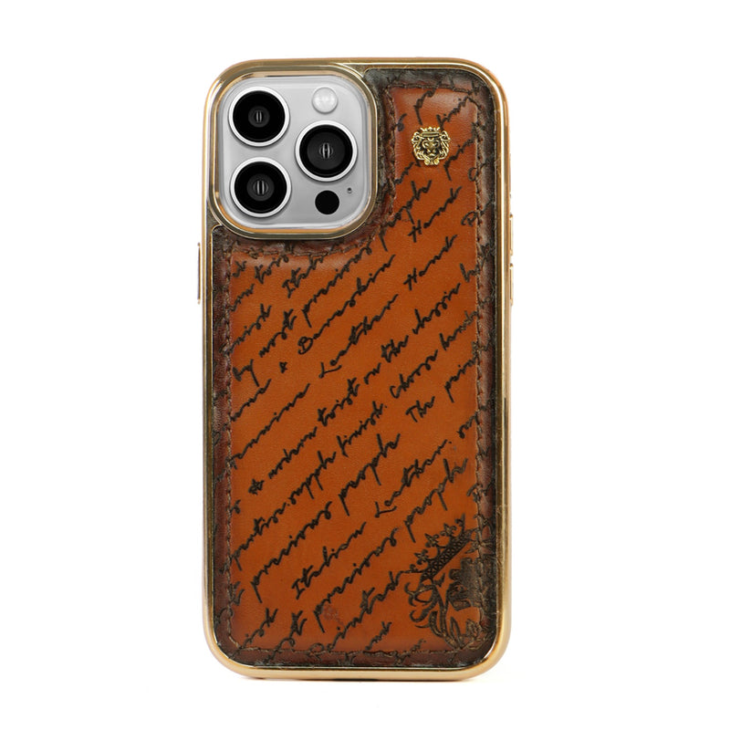 Tan Darker Scritto Laser Apple iPhone 13 Series Leather Mobile Cover by Brune & Bareskin