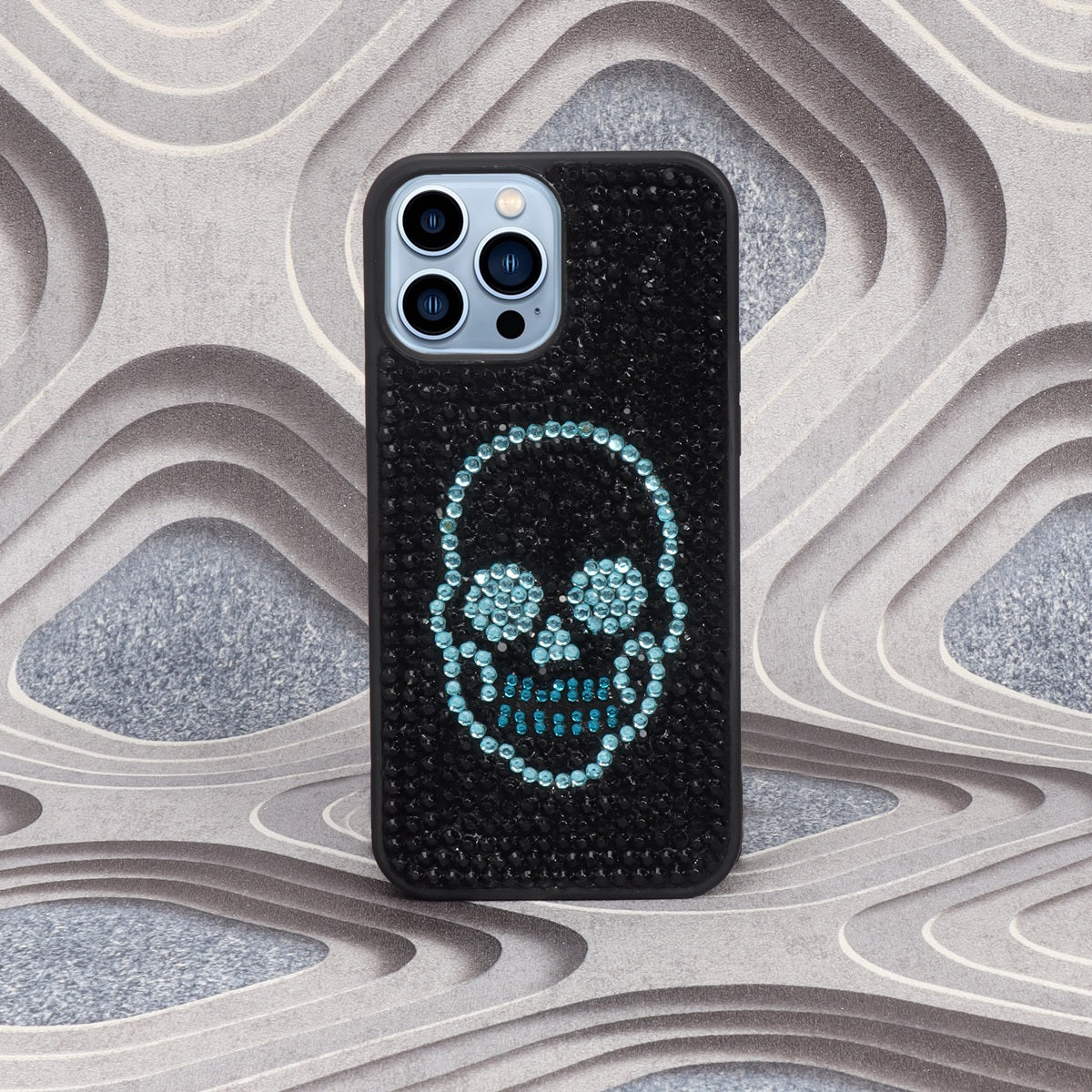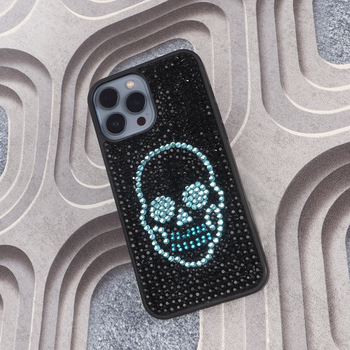 Apple iPhone Series Black And Sky Blue Swarovski Crystal Zardosi Mobile Cover By Brune & Bareskin
