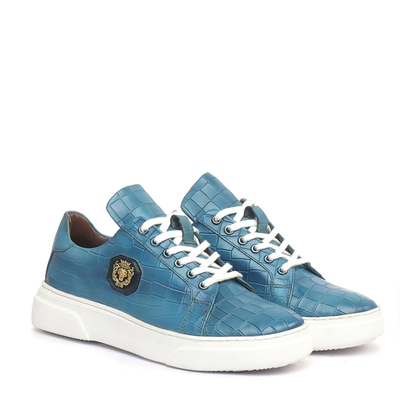 Wine and White are some of the most elegant color combinations and if, it is in Deep Cut Croco genuine leather then nothing like it. This Wine hand-colored smokey patina finish genuine leather sneakers are made to provide you comfort and style. It is entirely handcrafted from precisely selected highest quality materials. The artistic smokey finish is achieved by our artisans with hand painting using the patina regime. The lace-up design provides a snug fit and extra padding on the collar provides day-long comfort. The color can also be customized further with your matching apparel.
