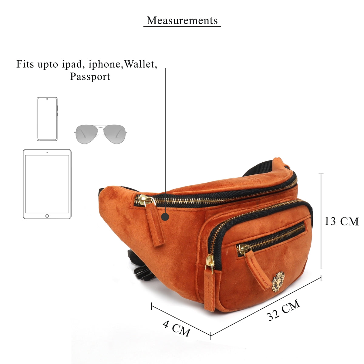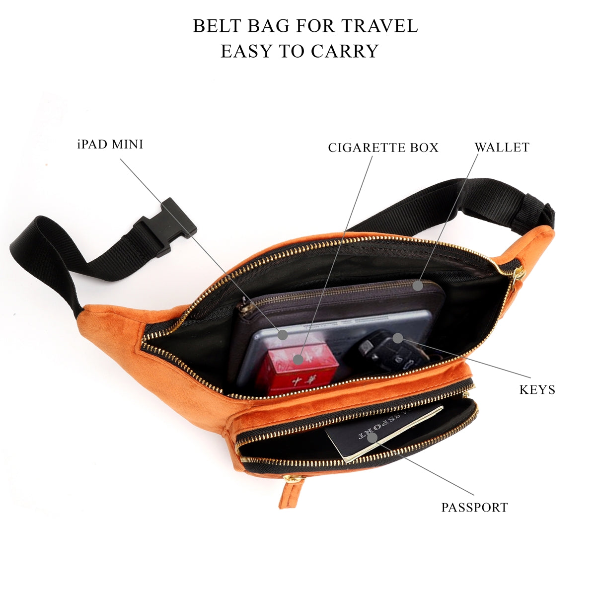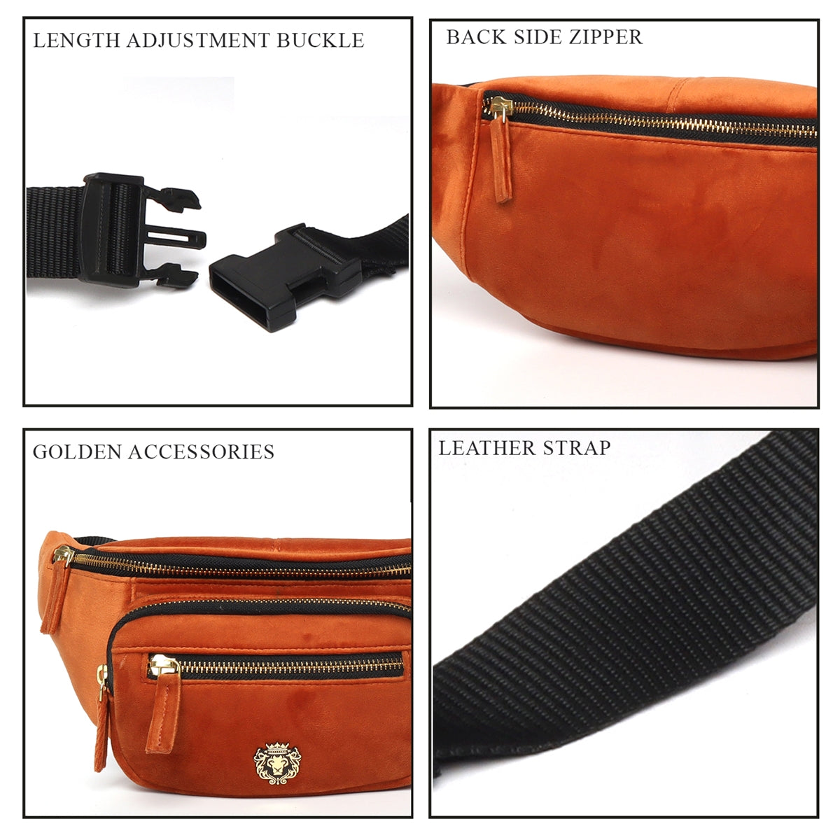 Orange Waist Bag In Velvet with Multi Pockets