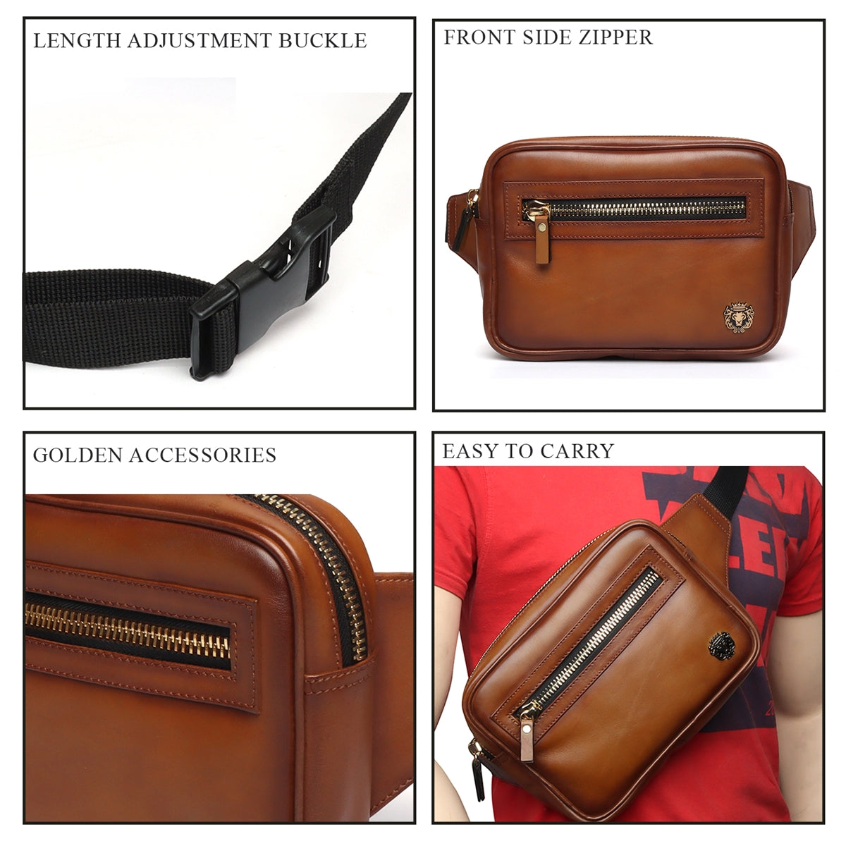 Waist Fanny Pack Bag In Squared Shape Tan Leather