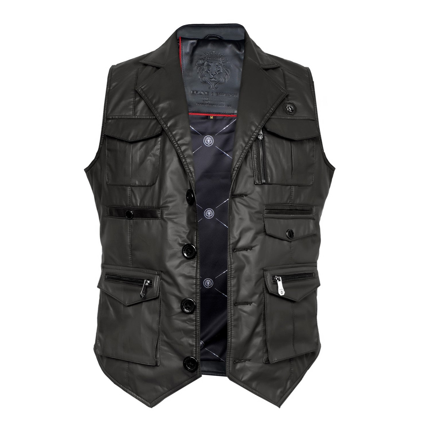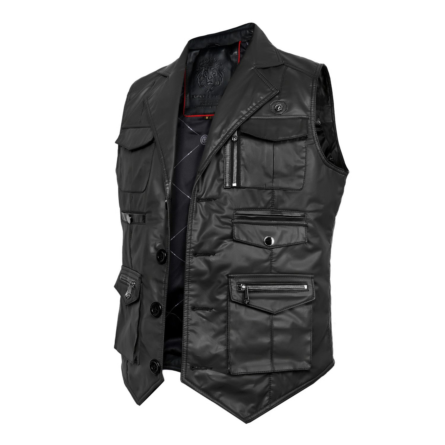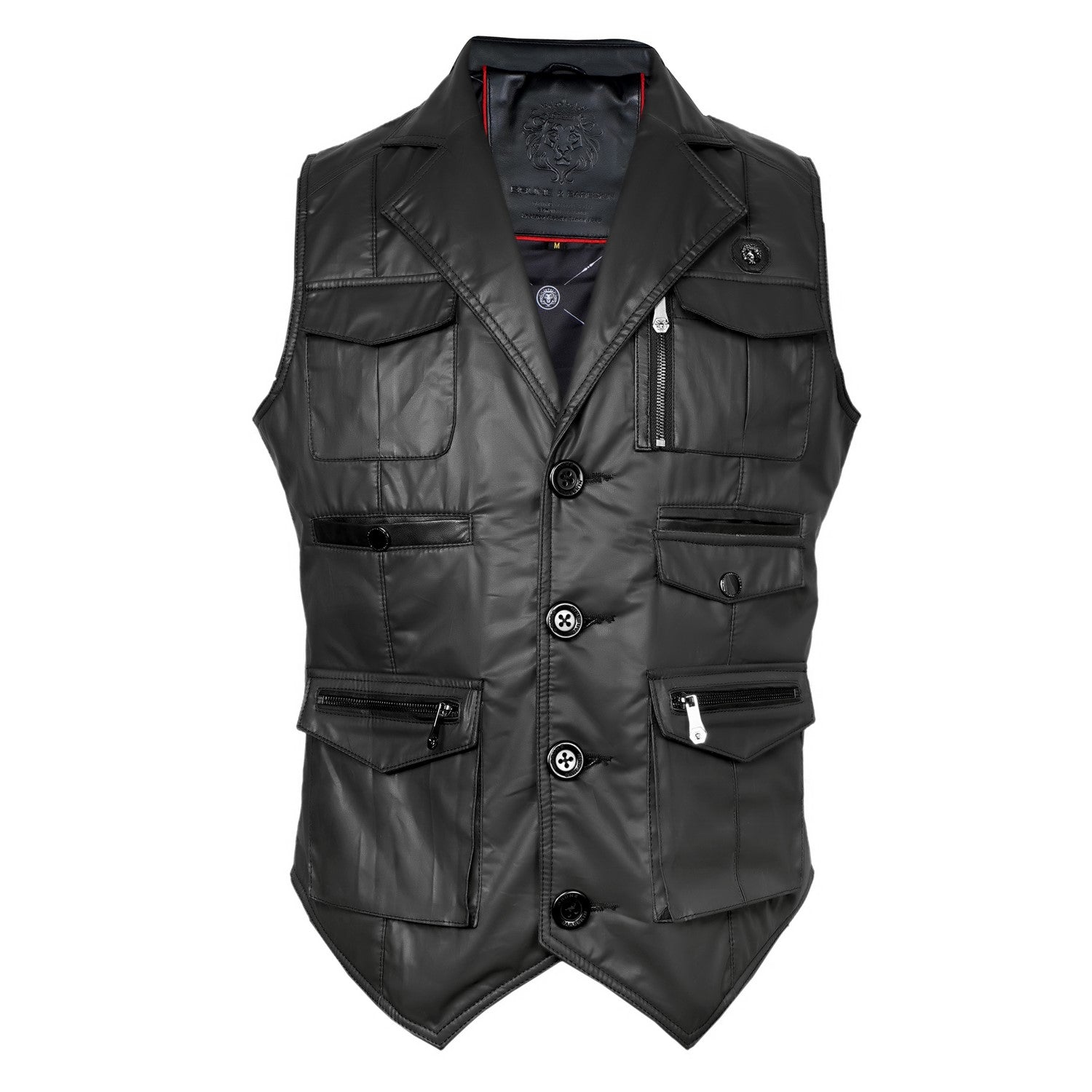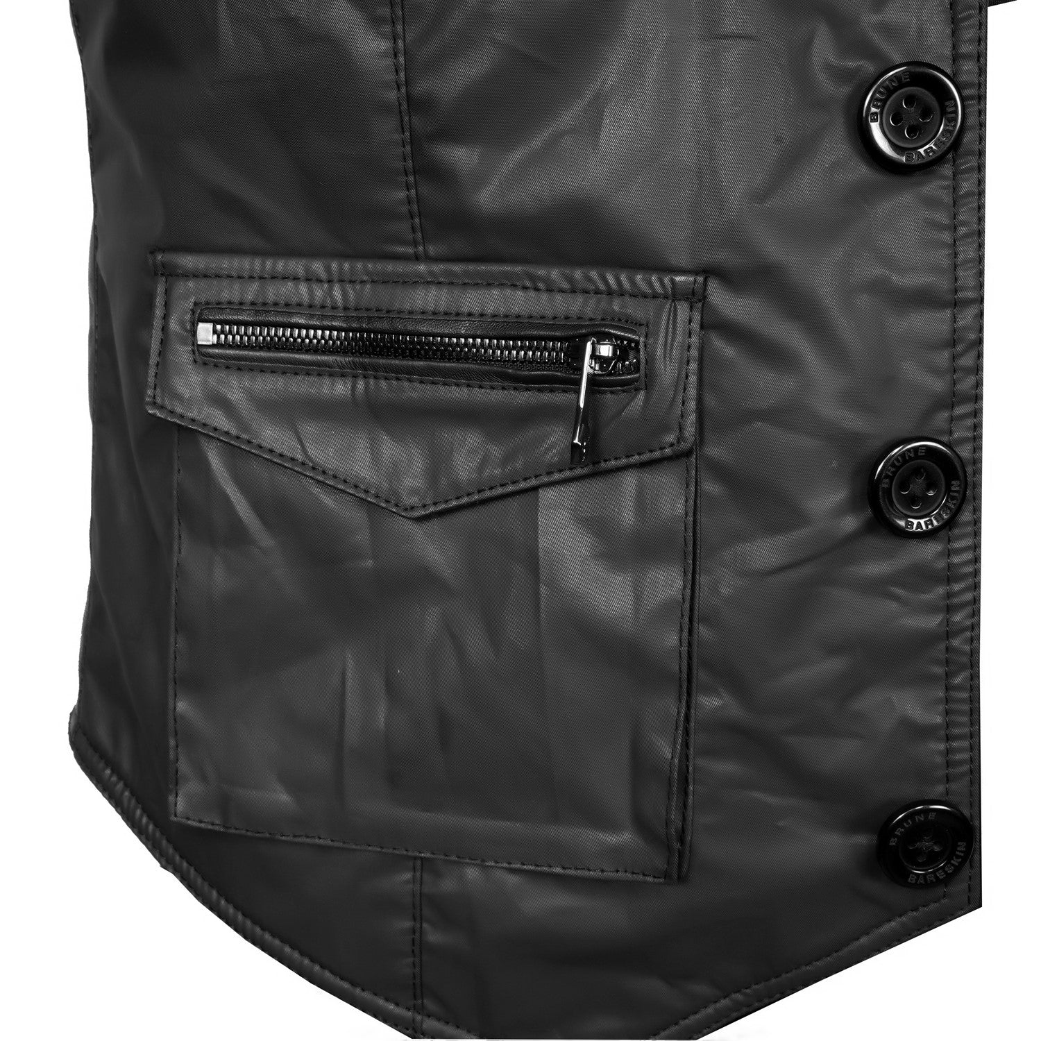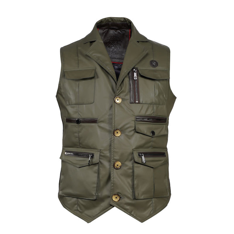 Brune & Bareskin's warm and stylish leather vests with multiple front pockets are perfect for carrying multiple essentials during travel. Each stylish vests is crafted from black waxy cotton for a comfy fit with contrasting leather trims for a timeless look, with a lapel collar and front button closure.