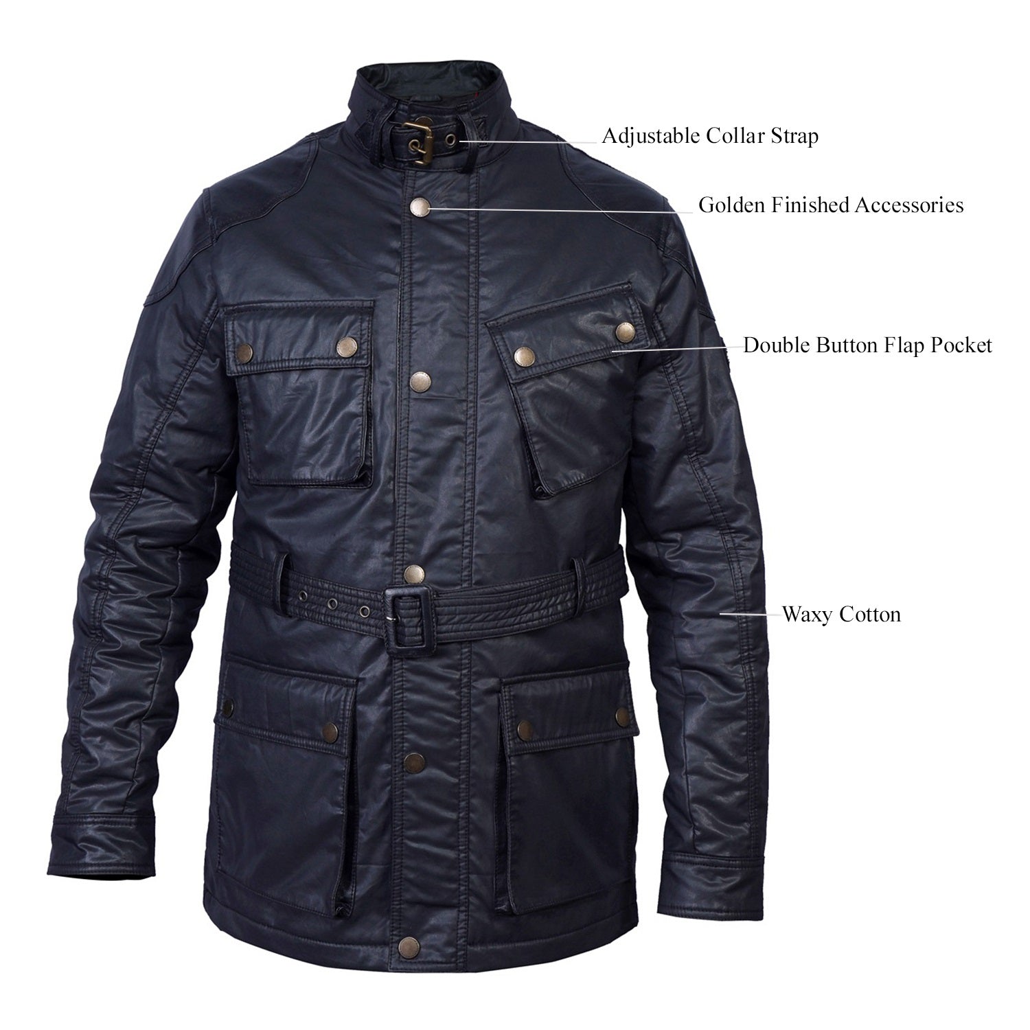 Introducing the BRUNE & BARESKIN Waxy Cotton Coat & safari jacket. Exuding impressive style and functionality, this handcrafted dark grey jacket features a high-closing collar, multiple flap pockets, and an inside concealed zipper for added security. With a dual look of jacket and coat, it offers a belted waist and buckle strap for a customizable fit and plenty of storage options with zippered chest and hand pockets. Stay light in weight without compromising on quality and elevate your look with this black masterpiece.