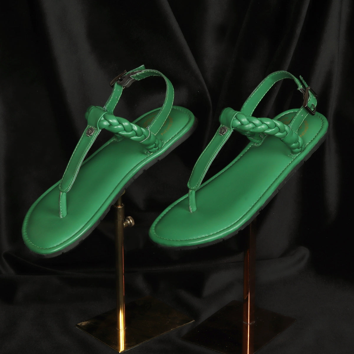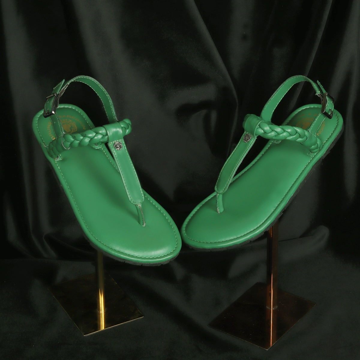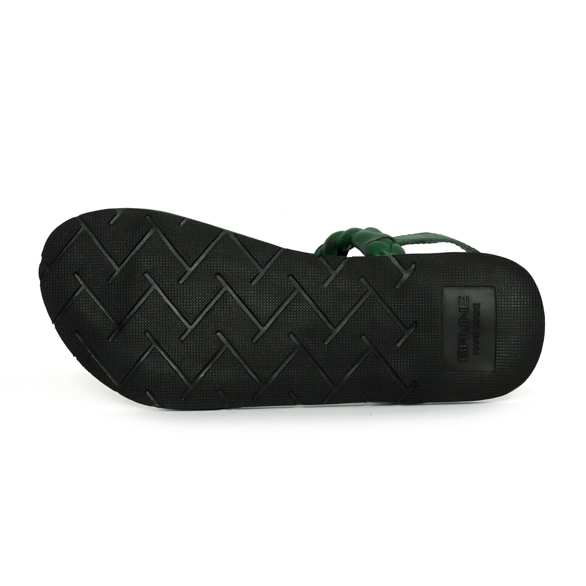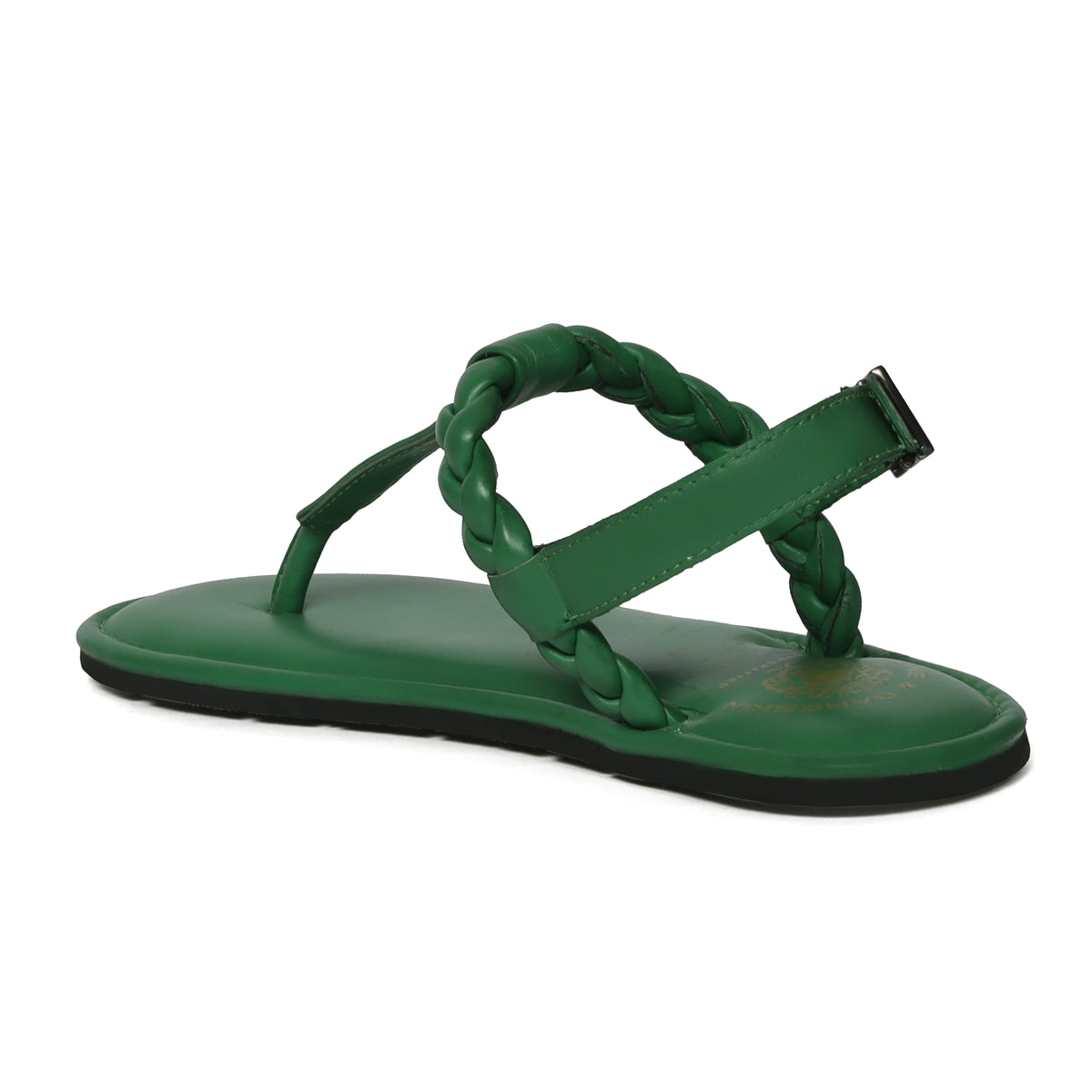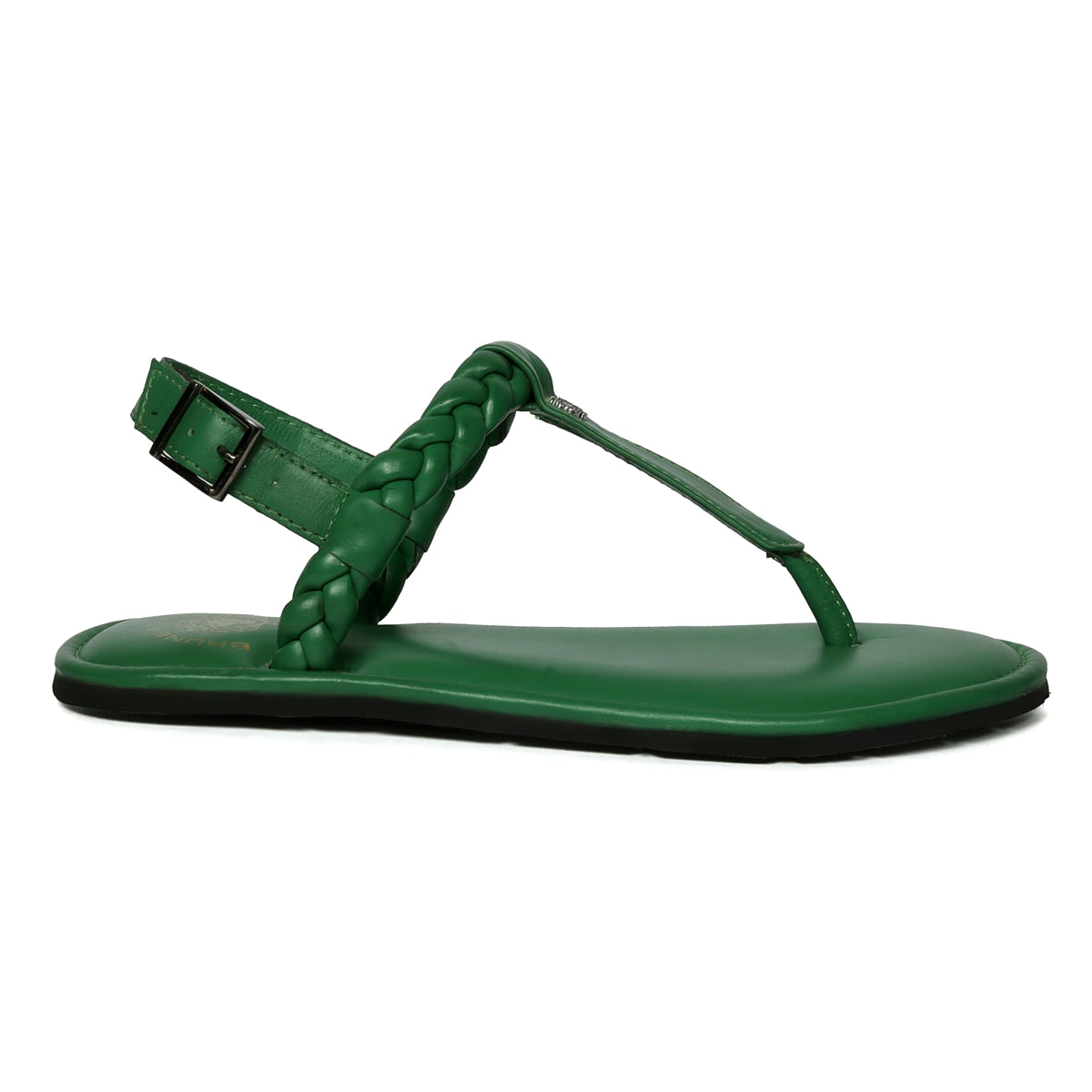 Weaved Loop Buckled T-Strap Green Genuine Leather Ladies Sandal by Brune & Bareskin