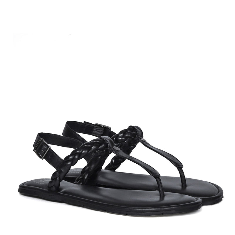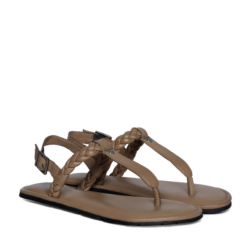 Weaved Loop T-Strap Golden Buckled Dark Brown Genuine Leather Ladies Sandal by Brune & Bareskin