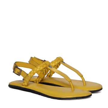 Weaved Loop Yellow T-Strap Buckled Genuine Leather Ladies Sandal by Brune & Bareskin