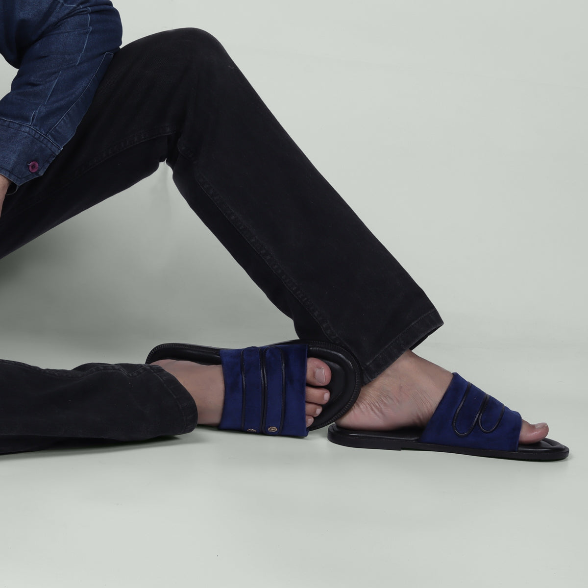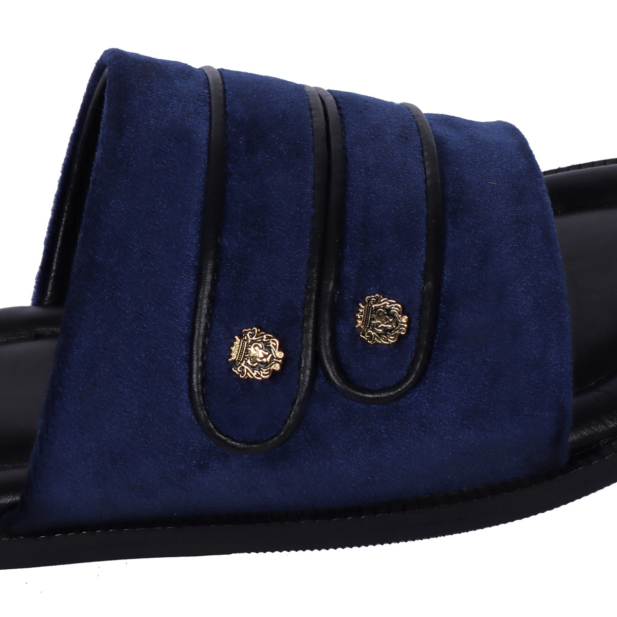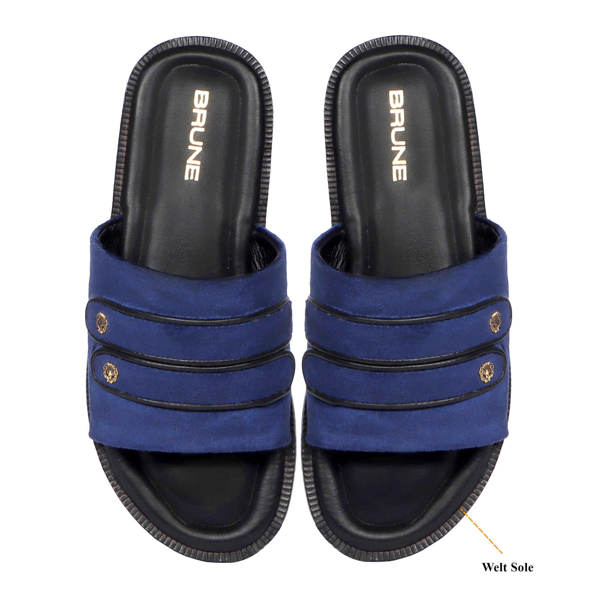 Welt Slide in Slippers with Blue Italian Velvet Two Strapped