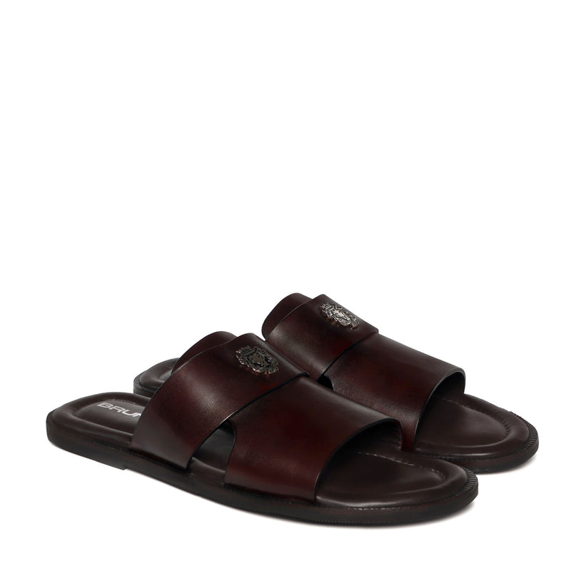Brune & Bareskin stylish addition to your summer wardrobe, these slide-ins are perfected with broad strap and cut out detail with welt slide. It features the brand’s signature small metal lion logo which further enhances the footwear. Its fitted with a memory foam flat sole that provides comfort and support all day long. Welt finishing is done on the outsole. This footwear can be styled with smart casuals & formals both. Just slip on and go and enjoy the warm weather in style by wearing this pair. Anti-skid rubber outer sole ensures the perfect walking grip. You can get it made in your favorite color with our bespoke services.
