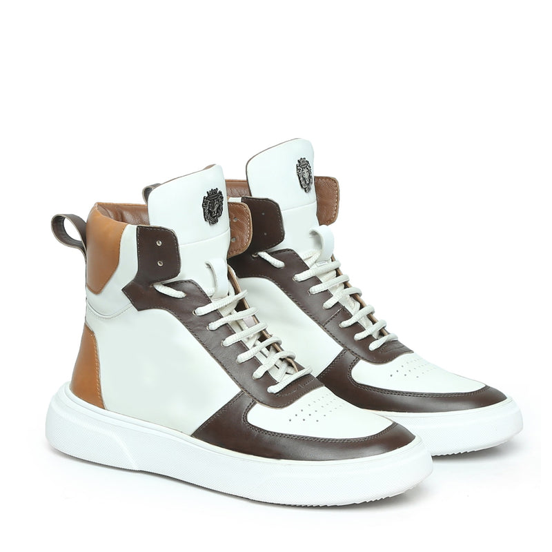 White High Ankle Sneakers with Contrasting Black & Yellow Leather Detailing by Brune & Bareskin