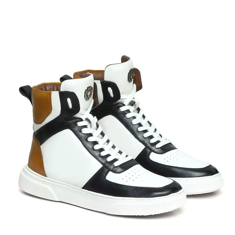 White High Ankle Sneakers with Contrasting Red & Blue Leather Detailing by Brune & Bareskin