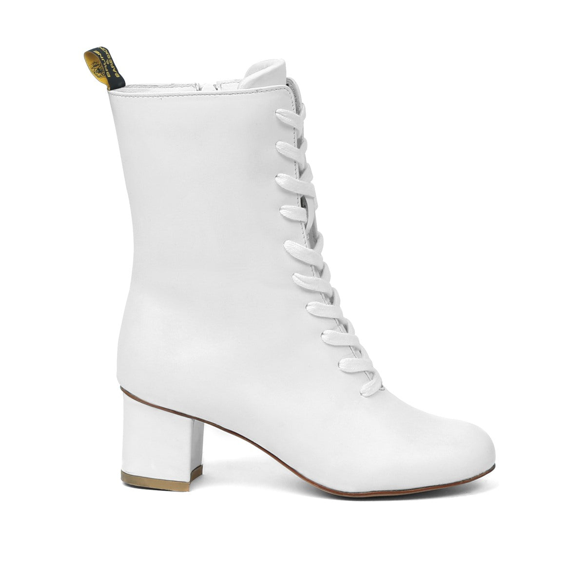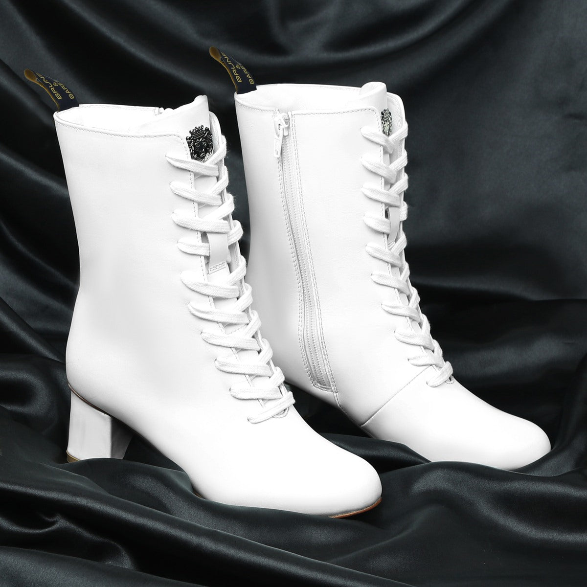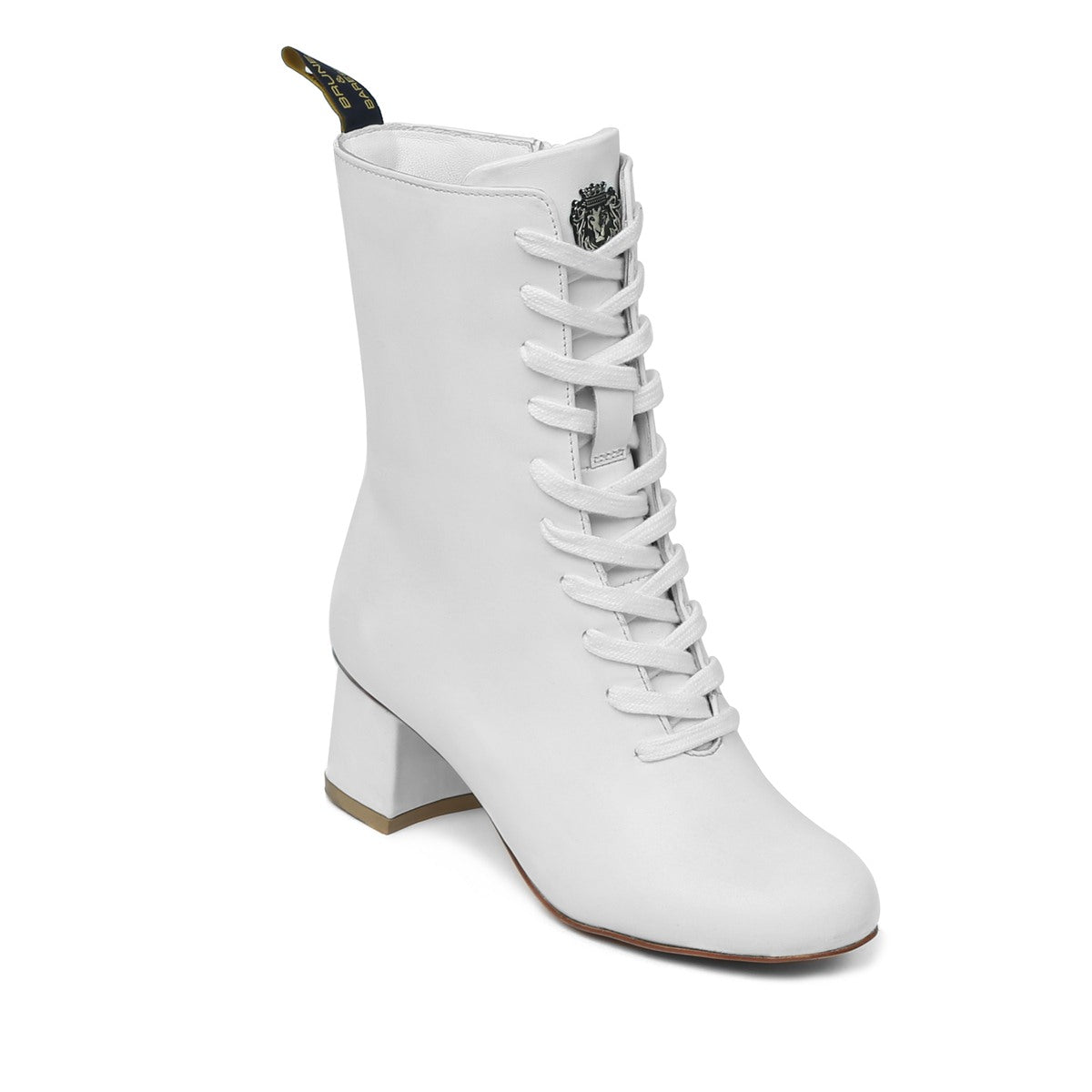 White Leather With Signature Metal Lion Long Lace-Ups Ladies Boots By Brune & Bareskin