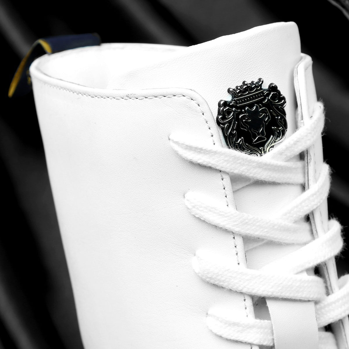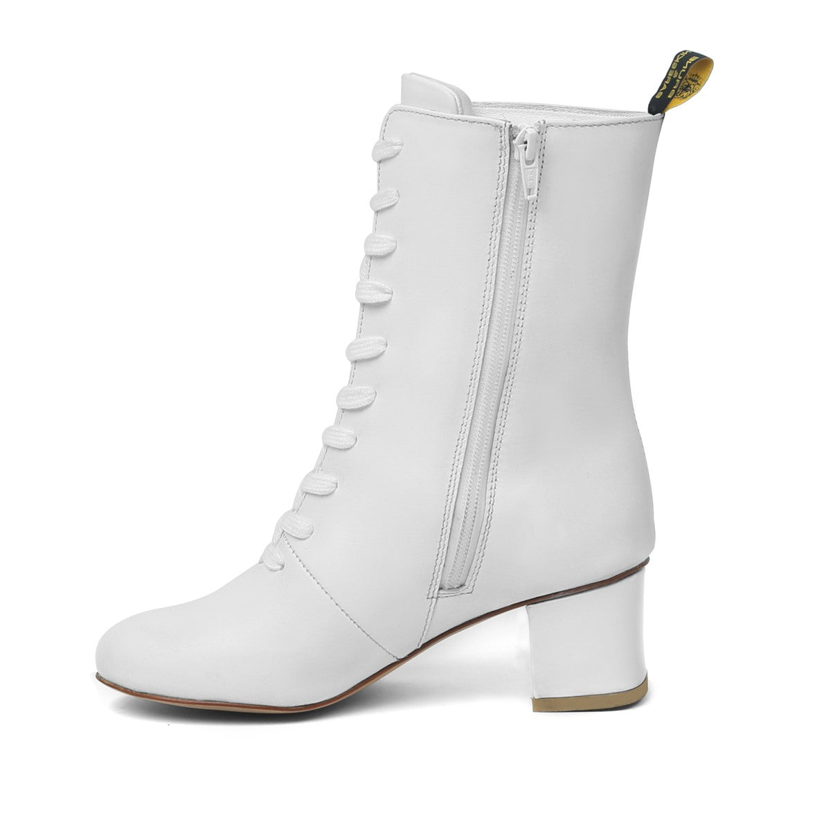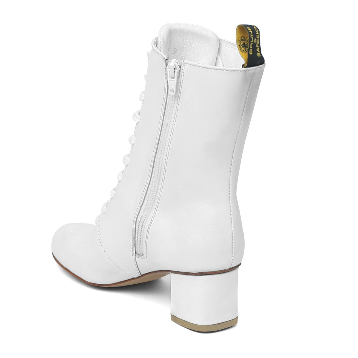 White Leather With Signature Metal Lion Long Lace-Ups Ladies Boots By Brune & Bareskin