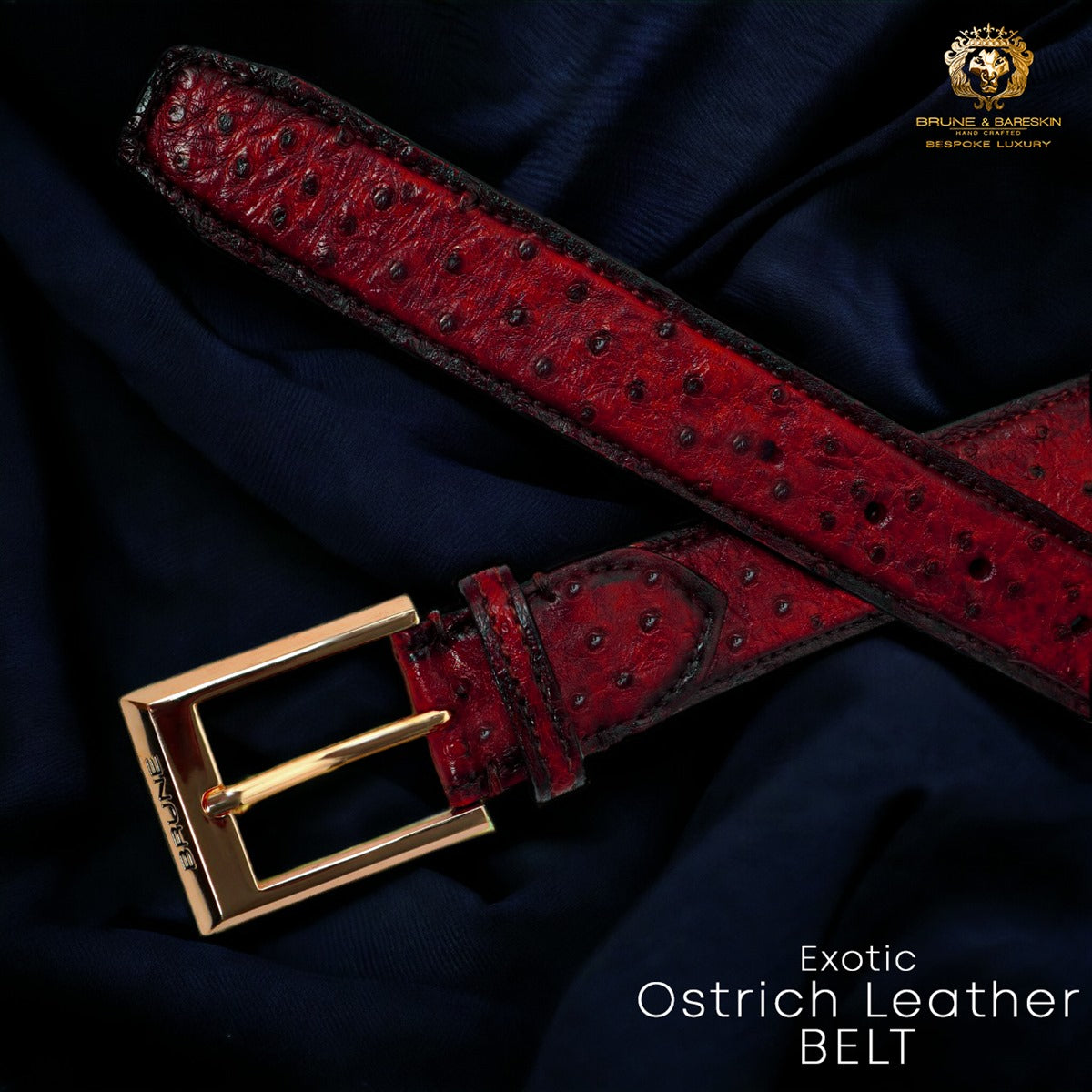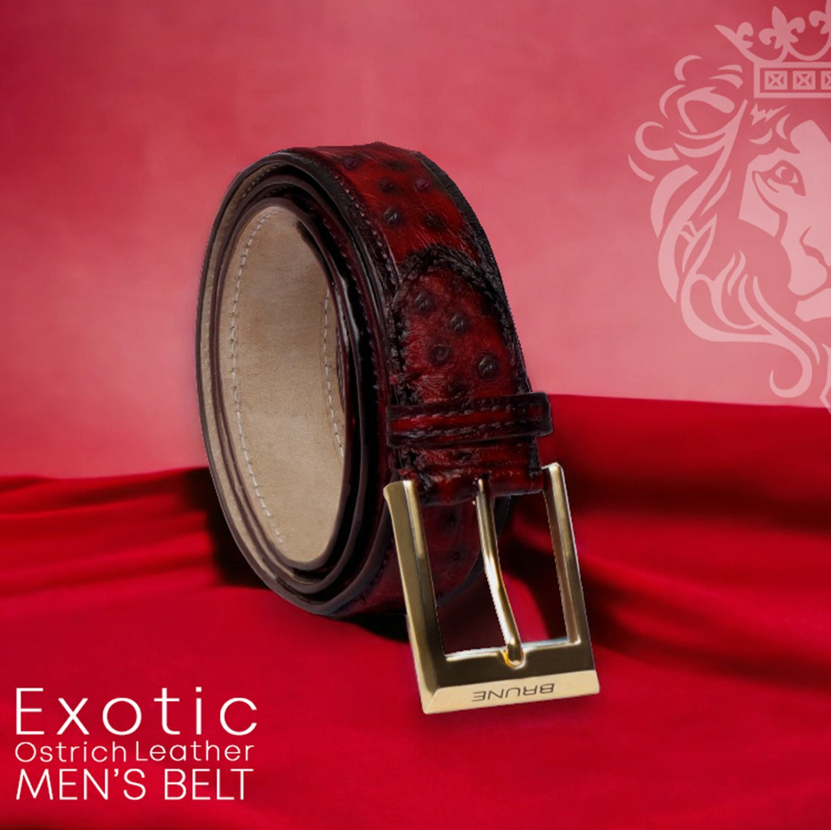 This special Ostrich leather belt is made to give you a complete elegant look. This attractive belt ranks high on the latest Formal style to offer you well-deserved popularity. This leather formal belt for men ensures to keep your comfort and style high. The Wine Ostrich Leather Belt looks fritter with a gold-finished buckle that enhances its appearance further. It can easily be teamed up with Suits or any tee and chinos for a carefree macho look. The quality of leather belts ranks high on durability and style factors.