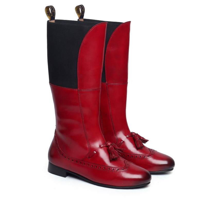 Wine Brogue Tassel Ladies Long Boots By Brune & Bareskin