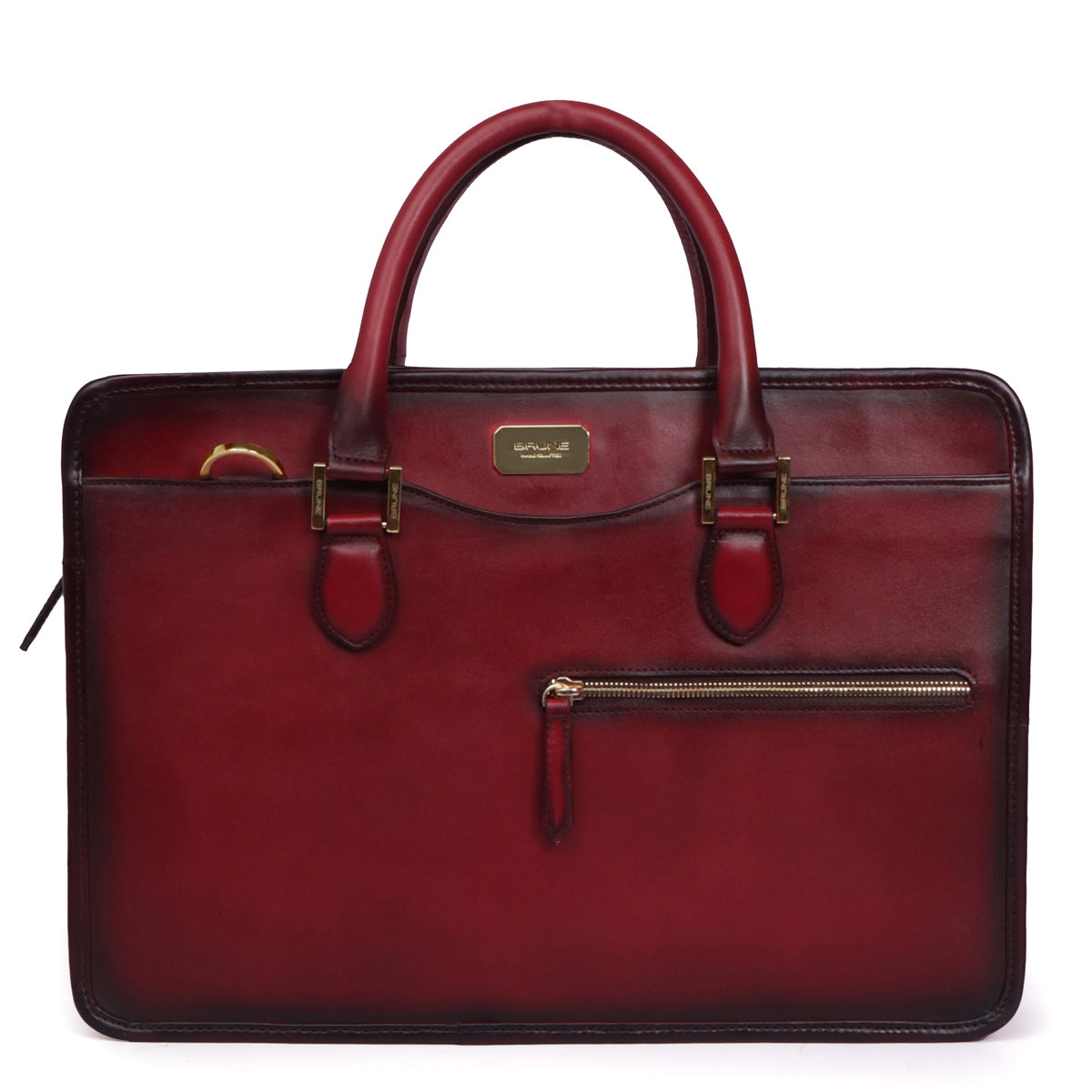Wine Classic Genuine Leather Laptop Office Briefcase With Golden Accessories By Brune & Bareskin