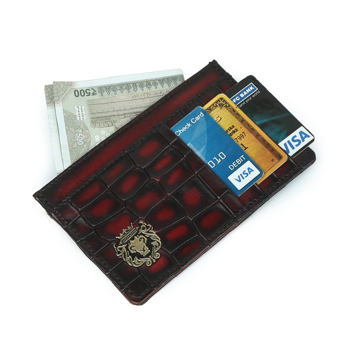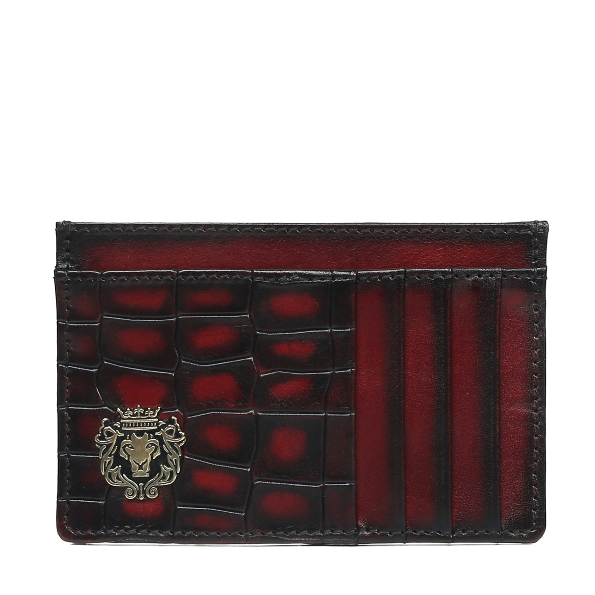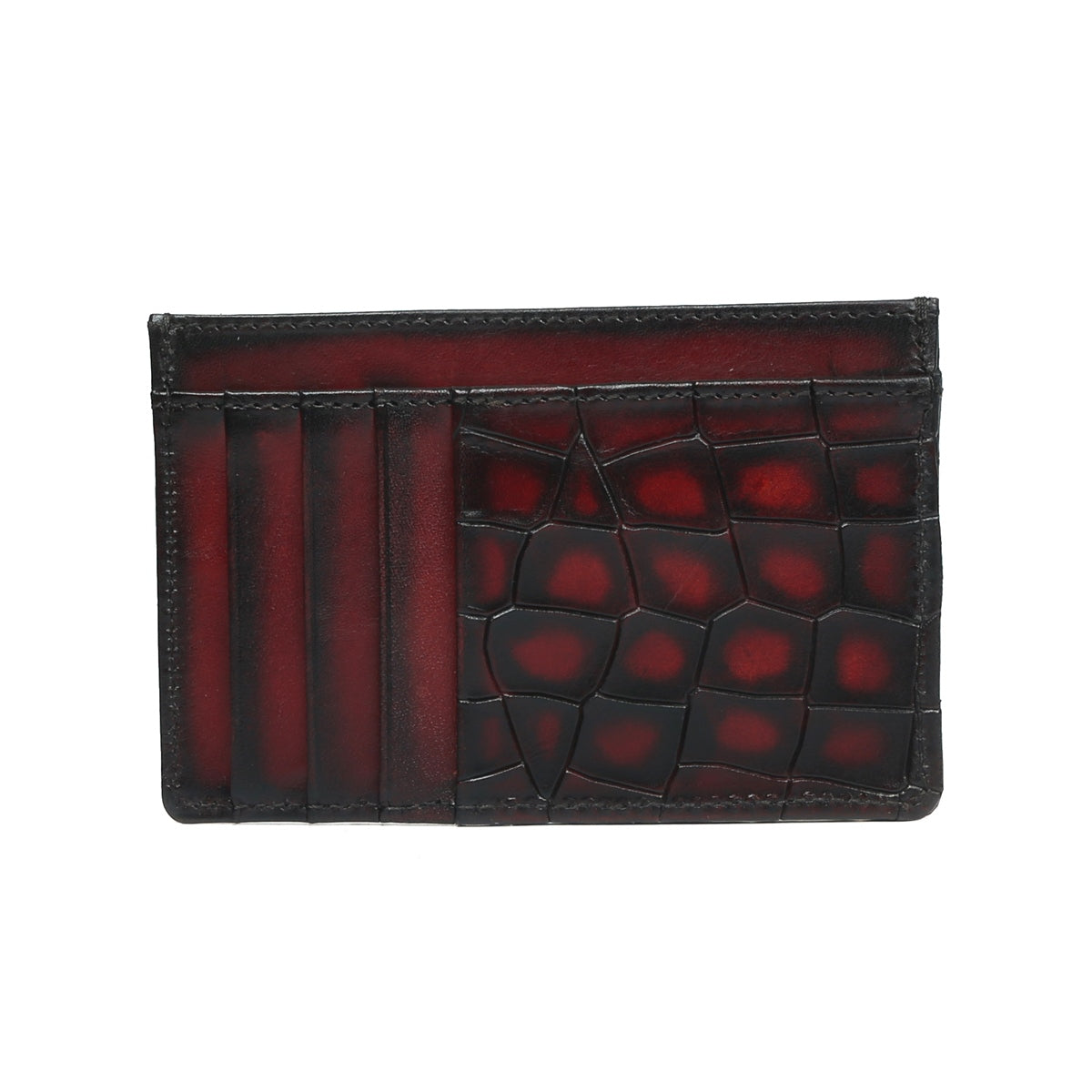 Wine Croco Deep Cut Leather Prolonged Card Holder By Brune & Bareskin
