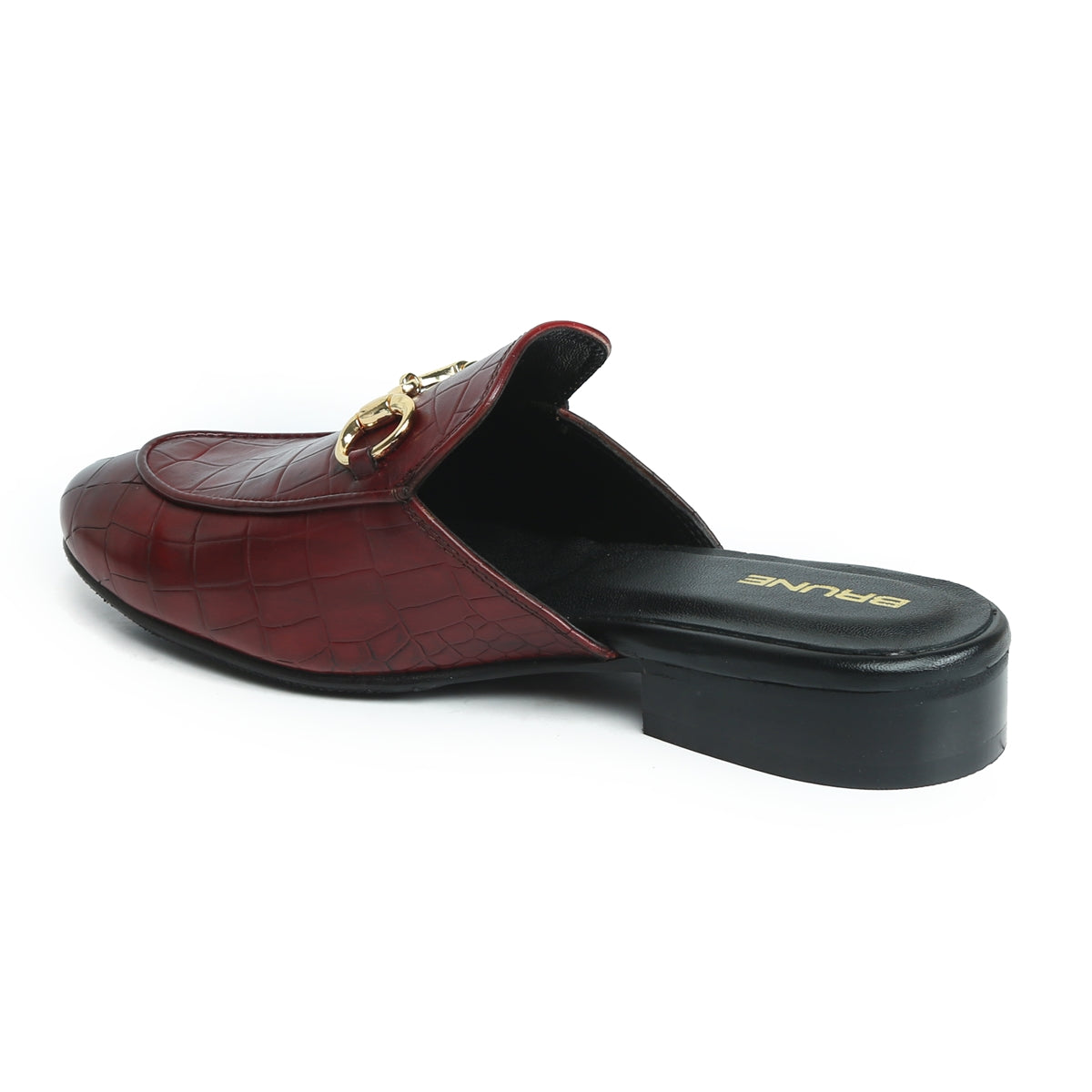 Wine Horse-bit Detailing Mules in Deep Cut Croco Textured Leather