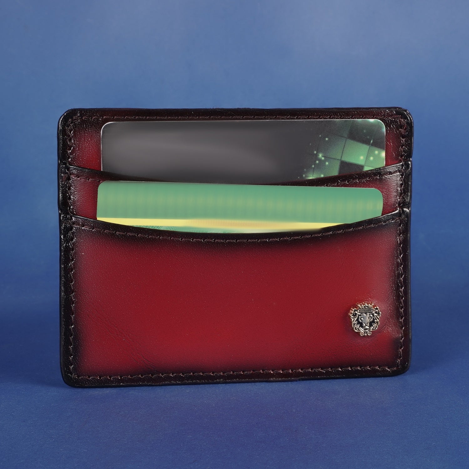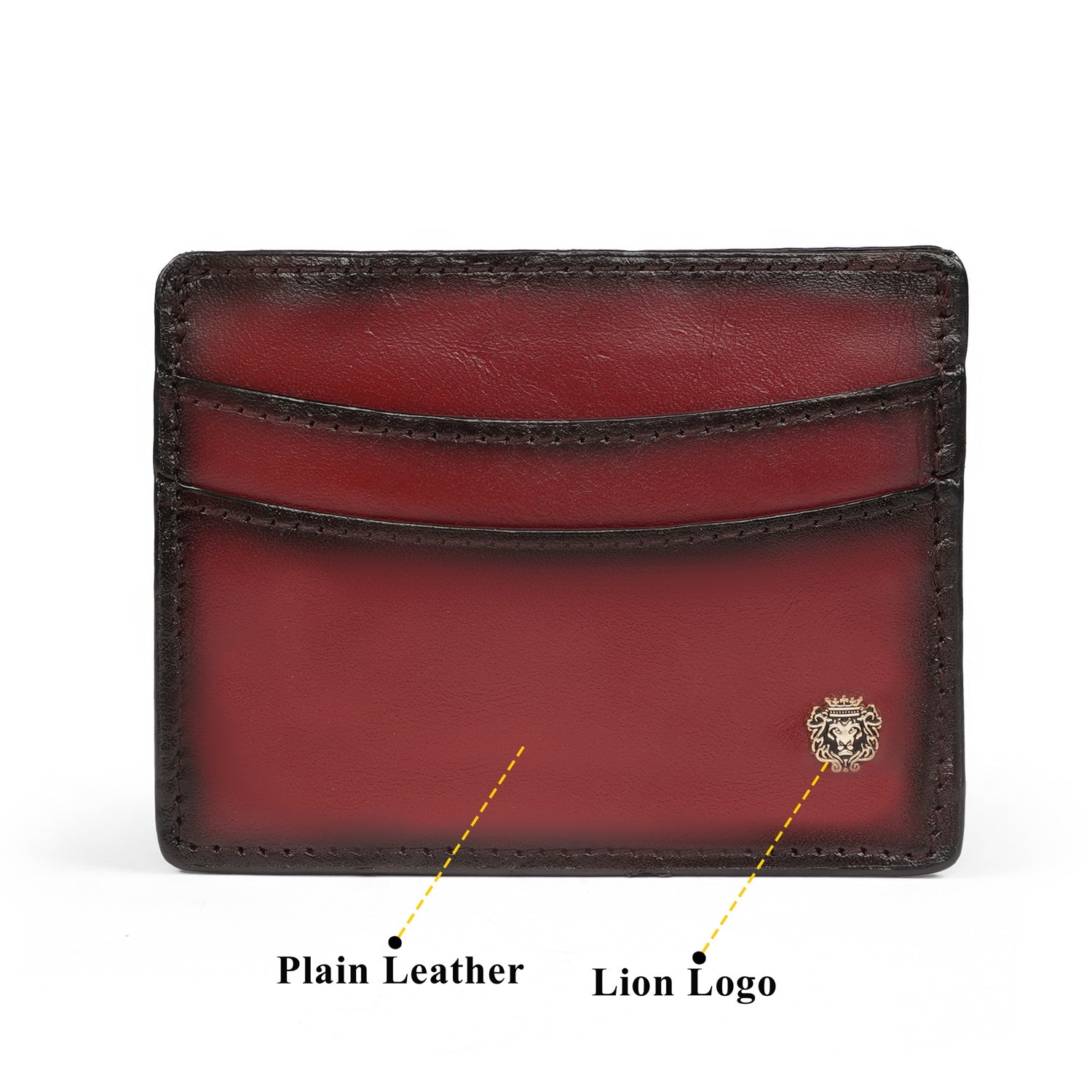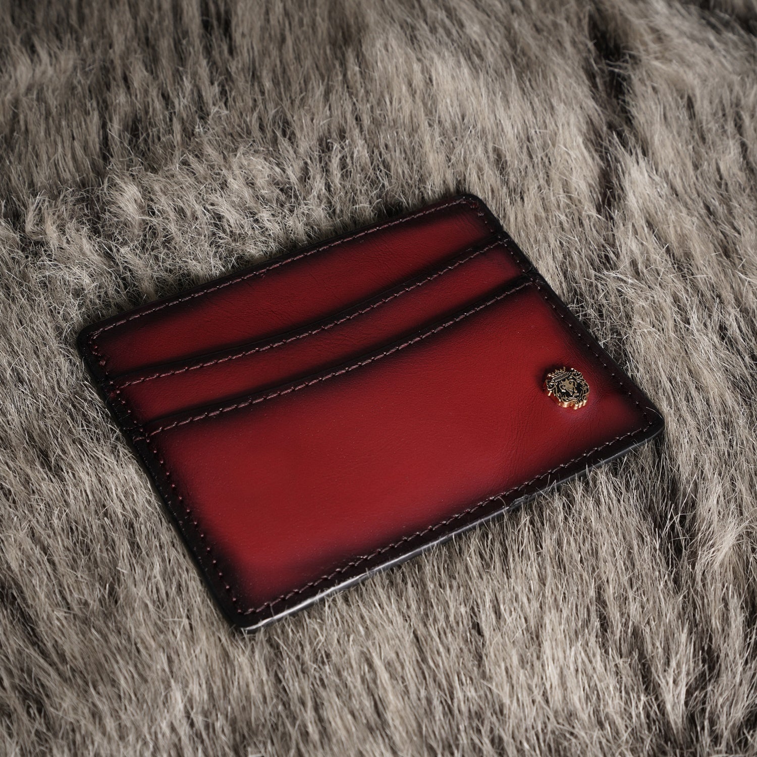 Wine Hand Painted Leather with Metal Lion Unisex Card Holder By Brune & Bareskin