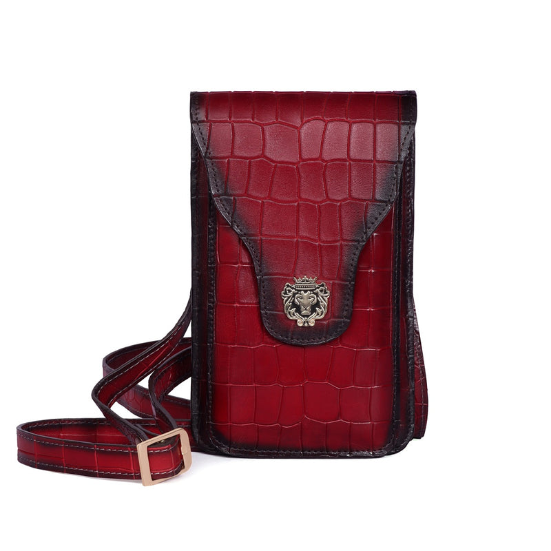 Double Pocket Mobile Cover In Wine Leather